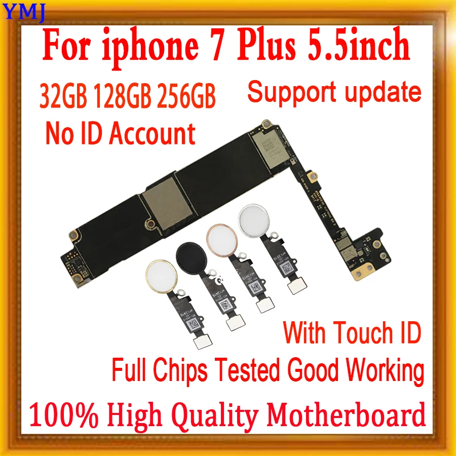 Материнская плата для iphone 7 Plus, 5,5 дюйма, сбез Touch ID, основная плата без ID-учетной записи, логическая плата на 100% протестирована, хорошая работа, поддержка 4G