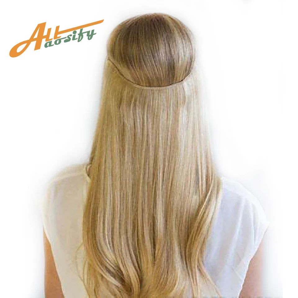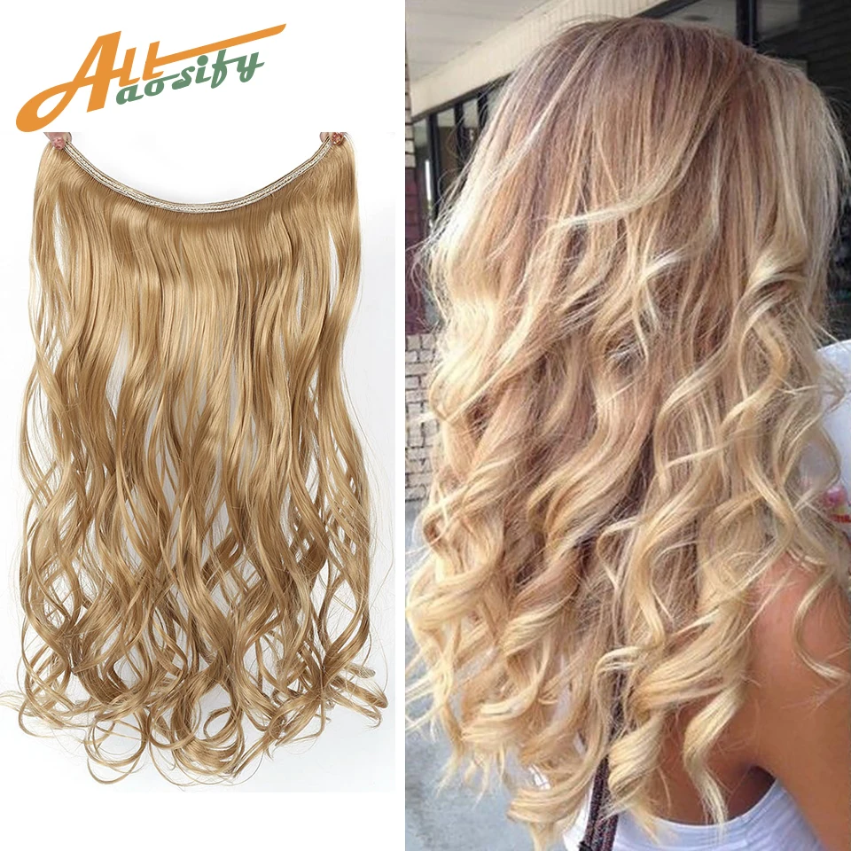 Allaosify 24 "синтетическая невидимая проволока без зажимов, секретная леска для наращивания волос, натуральные заколки для наращивания волос, Омбре