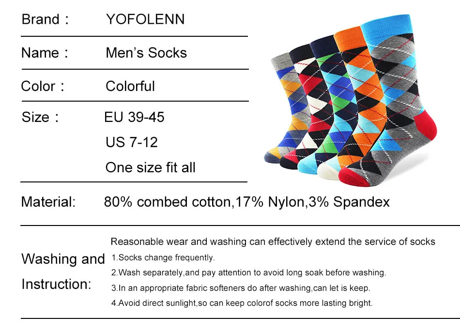 5 паралот Для Мужчин's красочные забавные животные, связанное с узором "ромбиками" чесаный хлопковые носки яркие Для мужчин с длинным круглым платье носки Размеры 7,5-12