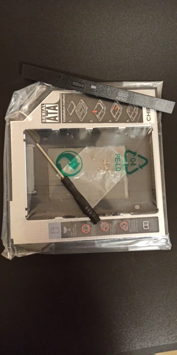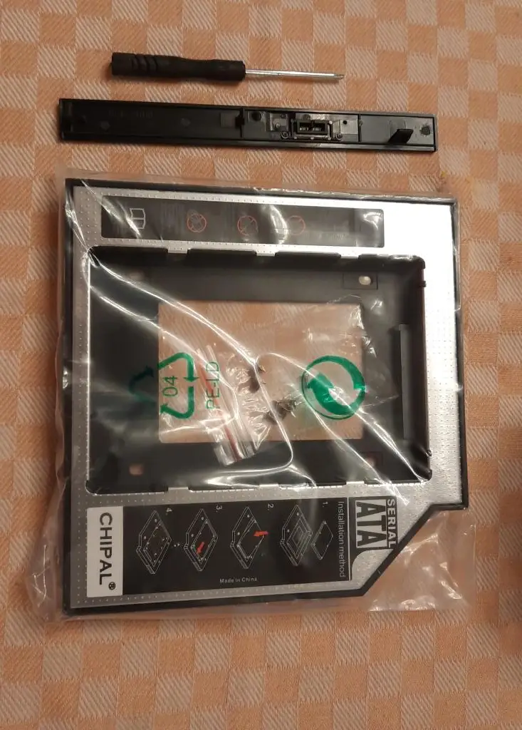 Установил вместо в ноут Lenovo idaepad y550. Всё встало замечательно. Заглушка с самого привода подошла отлично. Всё работает замечательно. Никаких проблем не возникло. В комплекте идут винты и отвёртка.