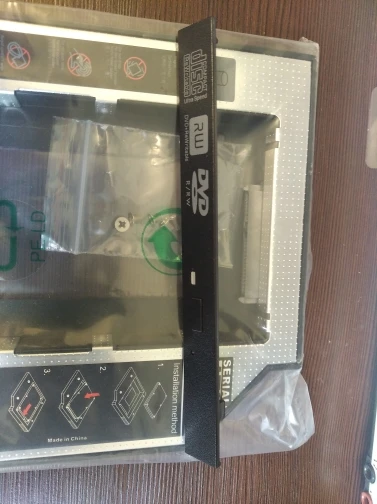 Пришла оперативно. Без повреждений. Встала идеально, полностью совместима с родной лицевой панелькой dvd-привода. Брал за 255 руб. В посадочное место не подошёл родной винт скобы крепления к ноутбуку (которую нужно переставлять с привода на этот кейс), пришлось подыскать другой винт.