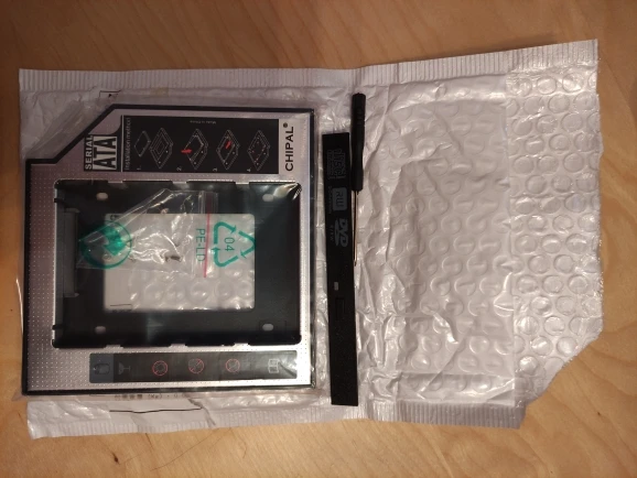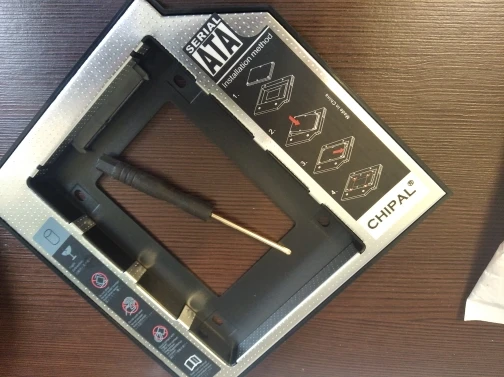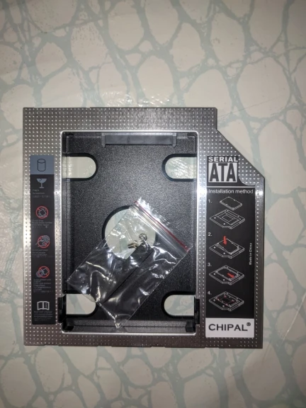 Товар поступил в Киев, Украина через логистическую компанию Nova Poshta за 22 дня. В комплекте от производителя CHIPAL укомплектовано (отвертка по винты, сами винты, фальшь крышка торца дисковода) смотрите фото. В ноутбук HP 4520S вошел без проблем. Недостатки: сигнальная светодиодная лампа не горит, сам корпус винтами не фиксируется к ноуту, держится только на разъемной соединении Sata. Поэтому нужно снять кронштейн от дисковода и прикрутить двумя винтами к корпусу CHIPAL. Корпус универсальный. Рекомендую Товар и Продавца.