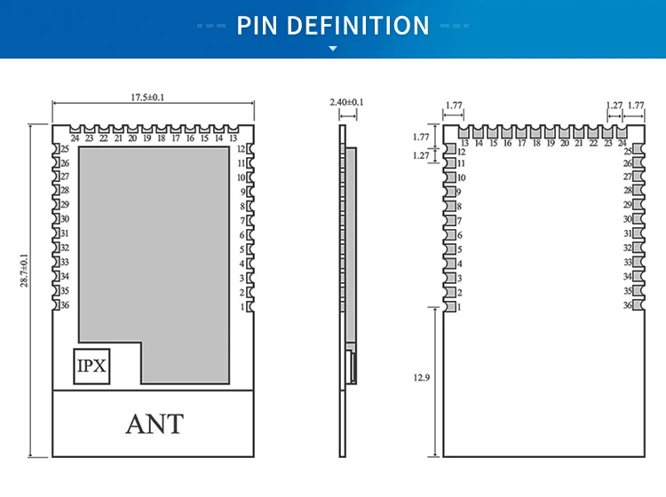 Беспроводной модуль nRF51822 Ble 4,2 с низким энергопотреблением, печатная плата, антенна IPX, интерфейс CDSENET E73-2G4M04S1D, 4 дБм, приемник-передатчик Bluetooth