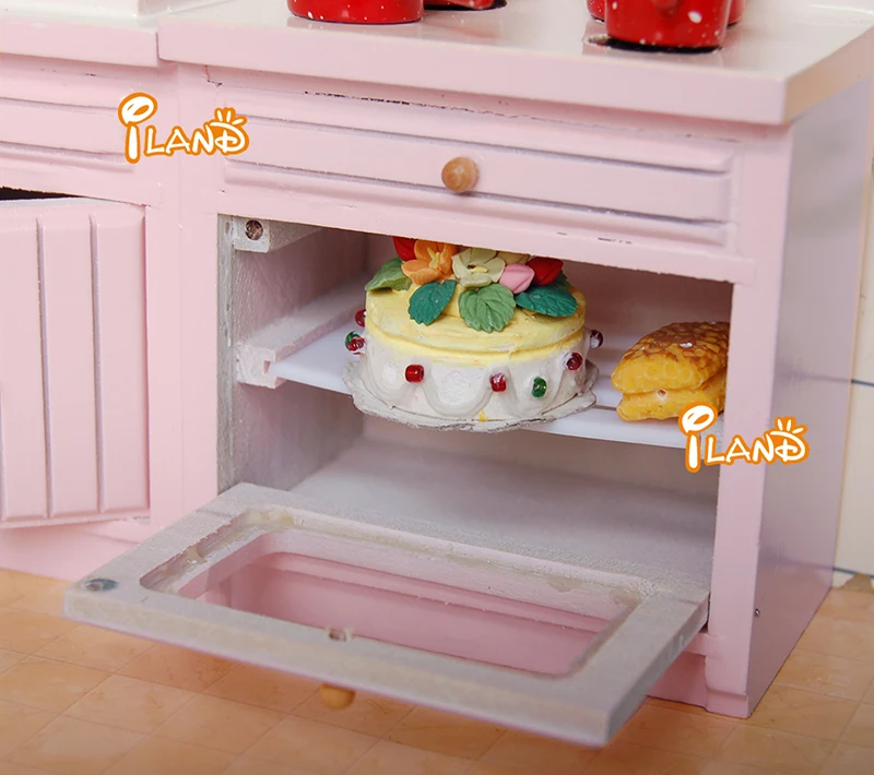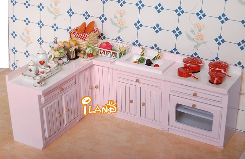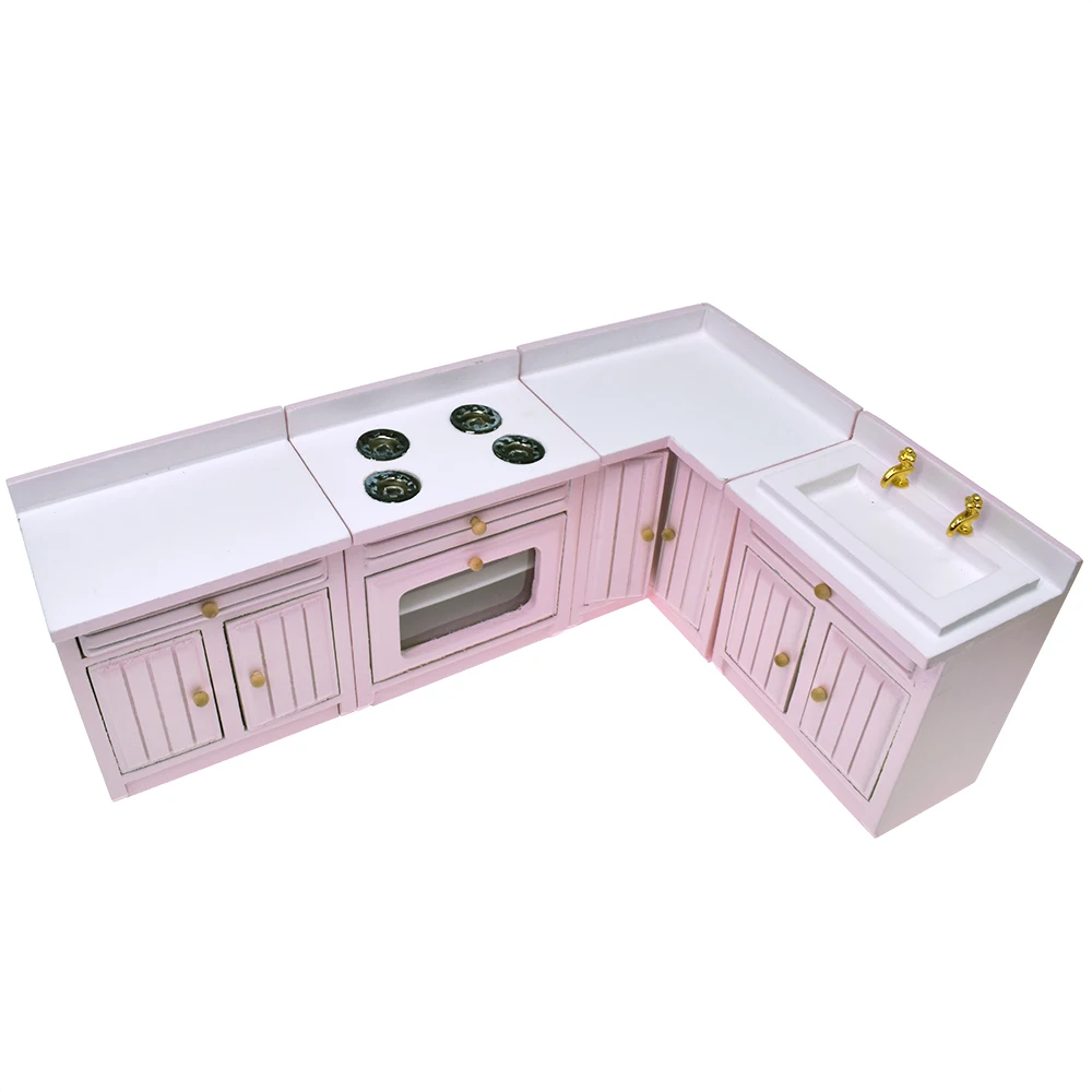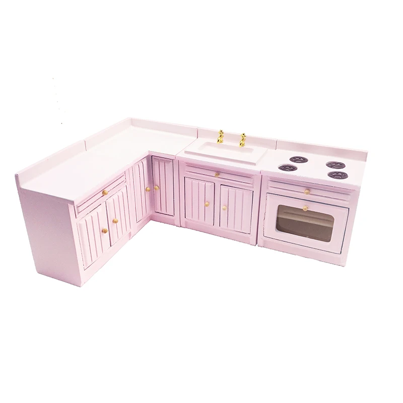 112 набор миниатюрной кухонной мебели для кукольного домика, светло-розовый шкаф, раковина, плита, жаровня, 4 шт. # WD012