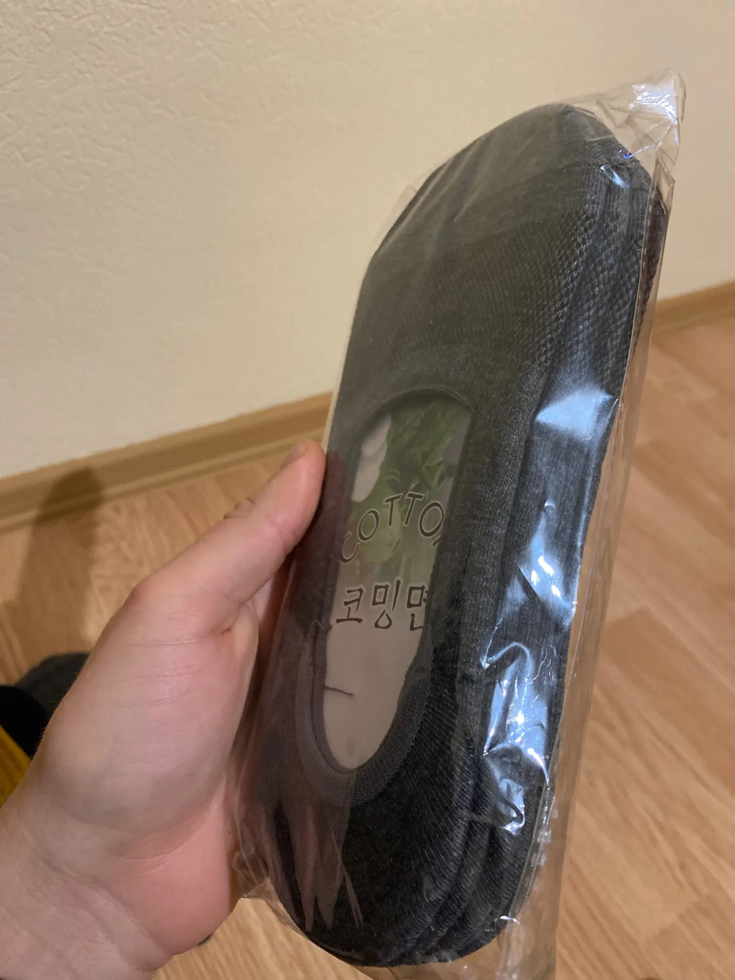Тонкие х/б носочки. На мой миниатюрный 42 налезли впритык, тем у кого размер больше не советую. Думаю на 40 размер ноги в самый раз будет. Купила всех цветов, бежевые растягиваются лучше всех, белые самые маленькие. За счет силиконовой вставки с пятки не сползают. Дошли до МСК за неделю