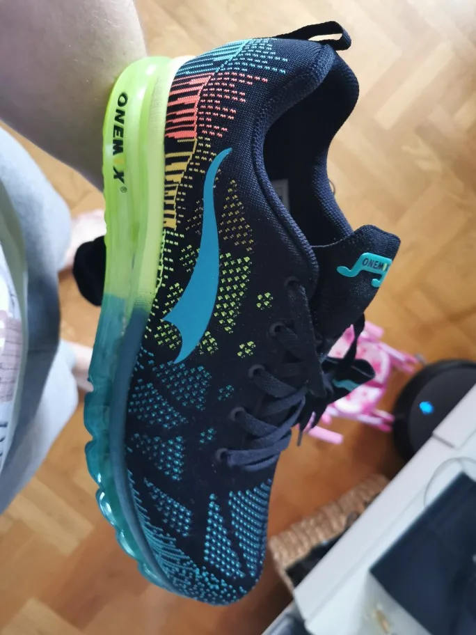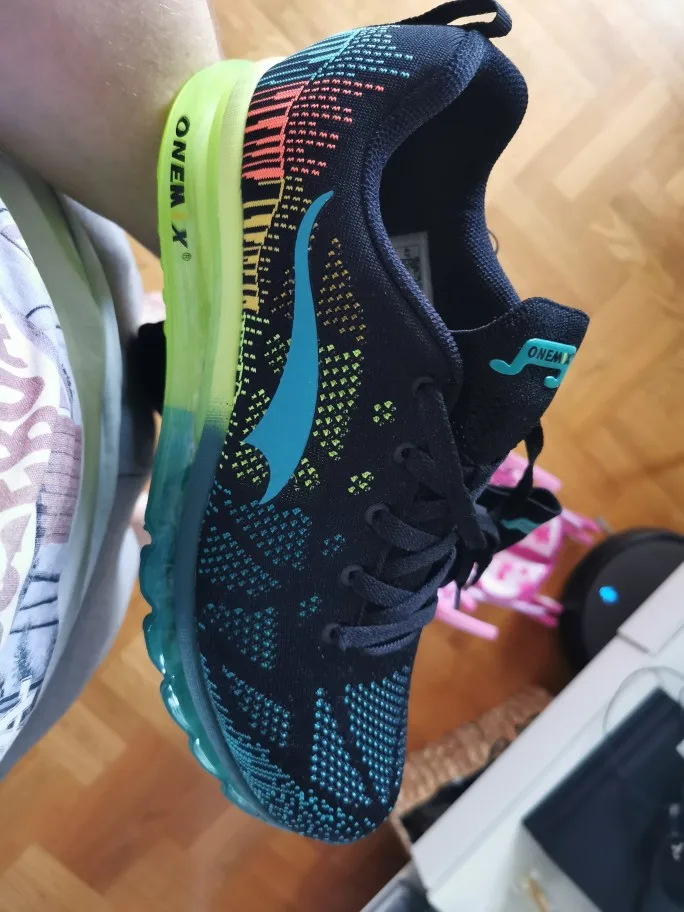 В целом кроссовки хорошие. К высокой пятке привыкал неделю особенно за рулем. Упаковка могла бы быть лучше. Кросы были обвёрнуты пакетом внутри носки в подарок и все это завёрнуто в транспортировочный пакет. Думал будет коробка. Короче на подарок нужно искать для них другую коробку) Когда открыл посылку. Воняли они просто пздц. Китайским клеем. Сейчас не воняют. Размер по таблице не подошёл. Ношу 43, взял 9.5. Немного маловаты. Ходить можно. Но есть небольшой дискомфорт. В след раз буду брать 10 размер. Взял с яркой подошвой. Многие обращают внимание на кросы.