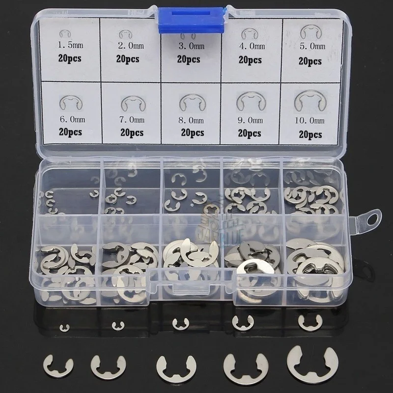 120200 шт. 304 нержавеющая сталь, нержавеющая сталь E-образный зажим, стопорное кольцо для крепления вала M1.5 M10