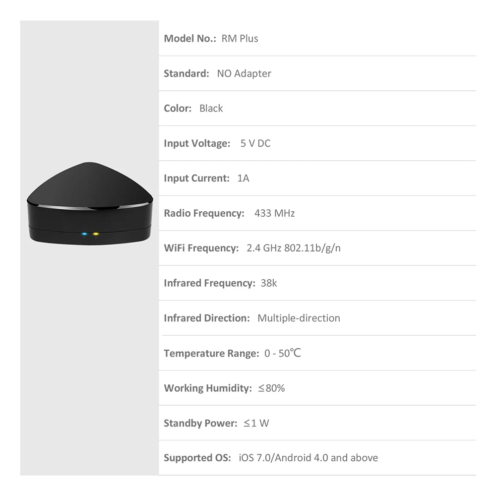 * Универсальное ИК-управление для бытовой техники, включая телевизор, кондиционер, ТВ-приставка и так далее.