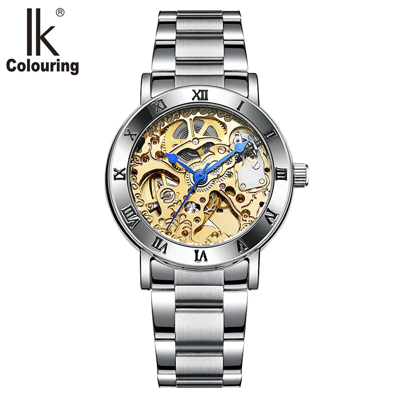 IK coloring механические Женские наручные часы, 36 мм корпус, Золотой корпус, автоматический ремешок из нержавеющей стали