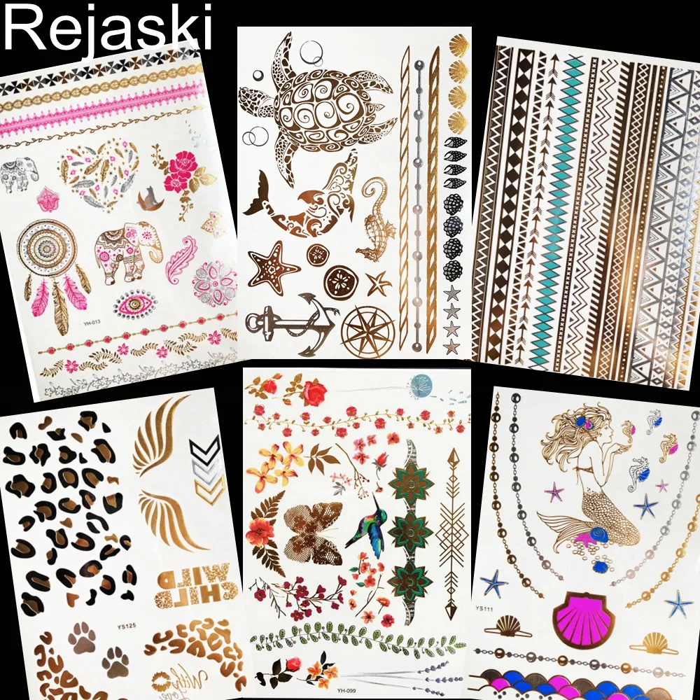 1 шт., водонепроницаемые наклейки для татуировок хны с цветком, золотые, металлические, для девушек, рука Хамса, ручная временная татуировка, для женщин, на запястье, вспышка, тату, кружевные цепочки