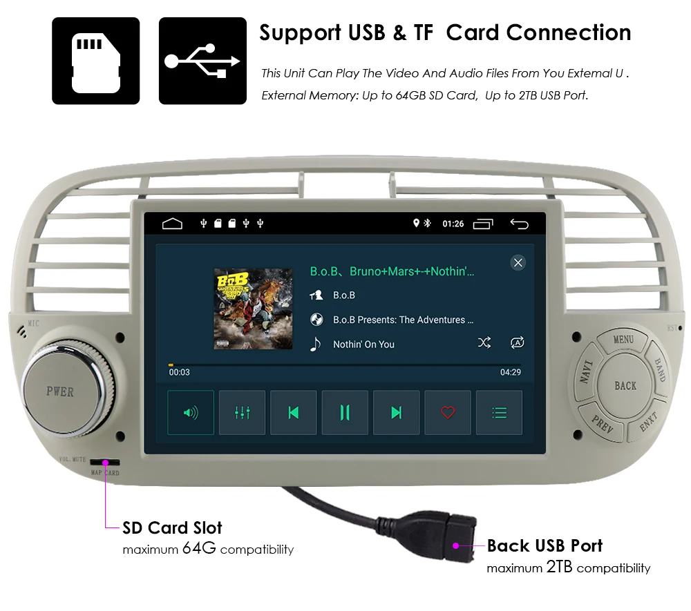 7-дюймовый стандартный мультимедийный плеер для FIAT 500 AM FM 2G 3...