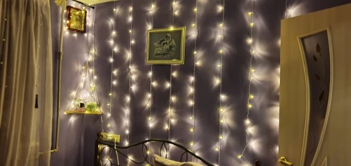 Гирлянда отличная! Есть много разных режимов, все работают, но я отдала предпочтение классике :) Цвет лучше всего передают первые 2 фото, очень атмосферно. Только будьте готовы к тому, что шнур с вилкой очень короткий (пришлось воспользоваться удлинителем и купить «безопасный» крючок для стены - который не отрывает обои, на wb такие есть). Но все равно рекомендую к покупке.