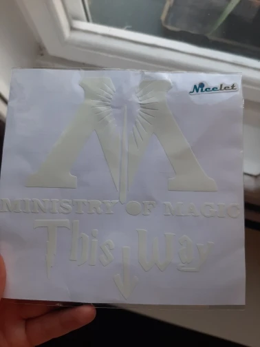 Общий стикер намного меньше, чем на фото, и не имеет фольги для переноса, что позволяет переносить все буквы, что не является идеальным.