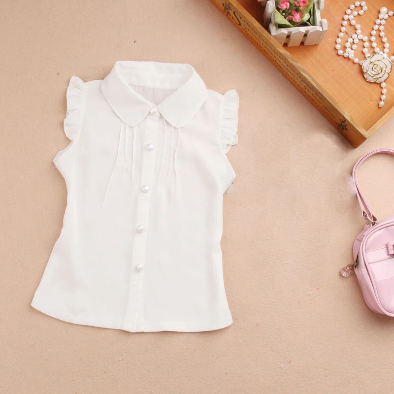 Летний топ для девочек, 2018, детские белые блузки без рукавов, черные рубашки с бантом для девочек-подростков, школьная шифоновая кружевная блузка, От 2 до 16 лет