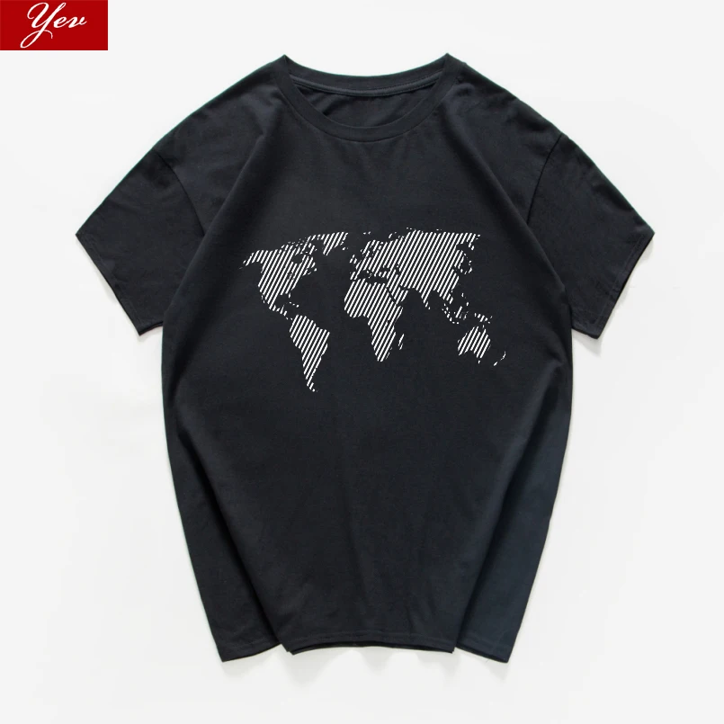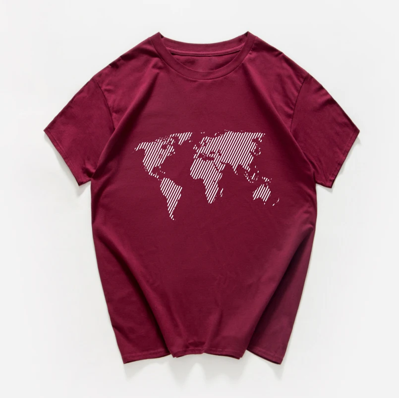 Мужская футболка из 100% хлопка, повседневные свободные топы с принтом карты мира, лето 2018