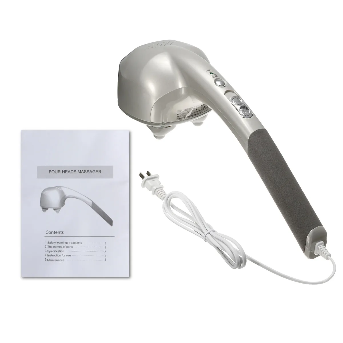 Массажер электрический ручной, вибрационная машинка с четырьмя головками для полного массажа всего тела, шеи и спины, релаксации мышц, глубокого массажа тканей, средство для ухода за здоровьем