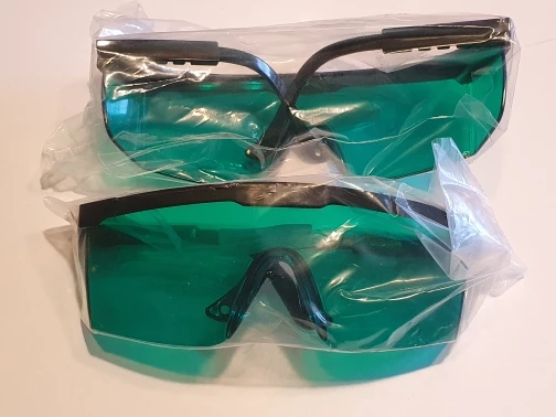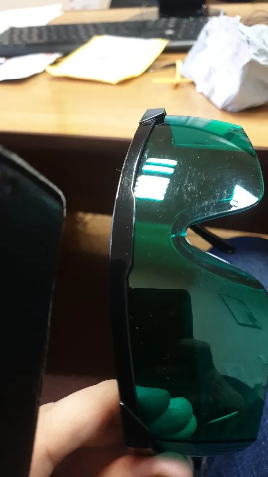Очки с красными линзами низкого качества и нестеклянные линзы с вместо указанных в спецификациях, протестированы при использовании зеленой лазерной указки 5 МВт с 532 нм волны, защита очков абсолютно бесполезна, даже если я приложил лазер к стене, Но пол отражается и поэтому может удариться по глазам из-за каких-либо скачков луча, но, используя очки, я увидел, что лазер был в состоянии проникать слишком сильно, несмотря на то, что опустить голову, чтобы избежать этого, и что я в последующий раз увидел некоторые признаки для глаз.
