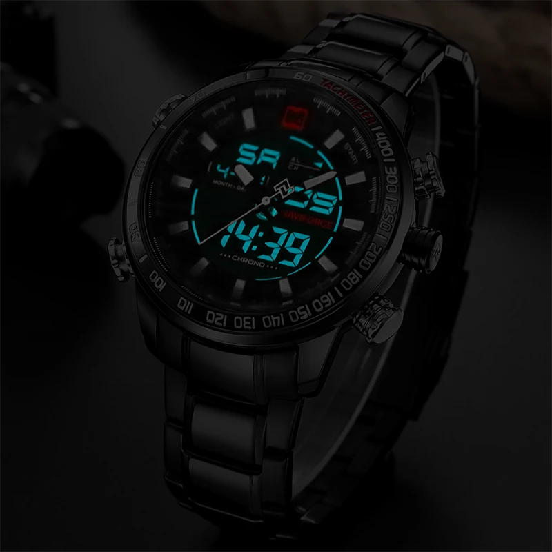 Часы NAVIFORCE мужские, спортивные, аналоговые, водонепроницаемые, со стальным светодиодом