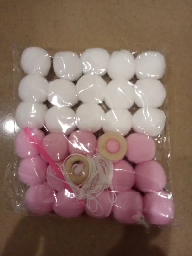 Заказывали помпоны,чтобы украсить детскую кроватку. Они очень мелкие, цвет как на фото. Впринципе за такую цену ничего другого можно было и не ожидать. В общем всем доволен.