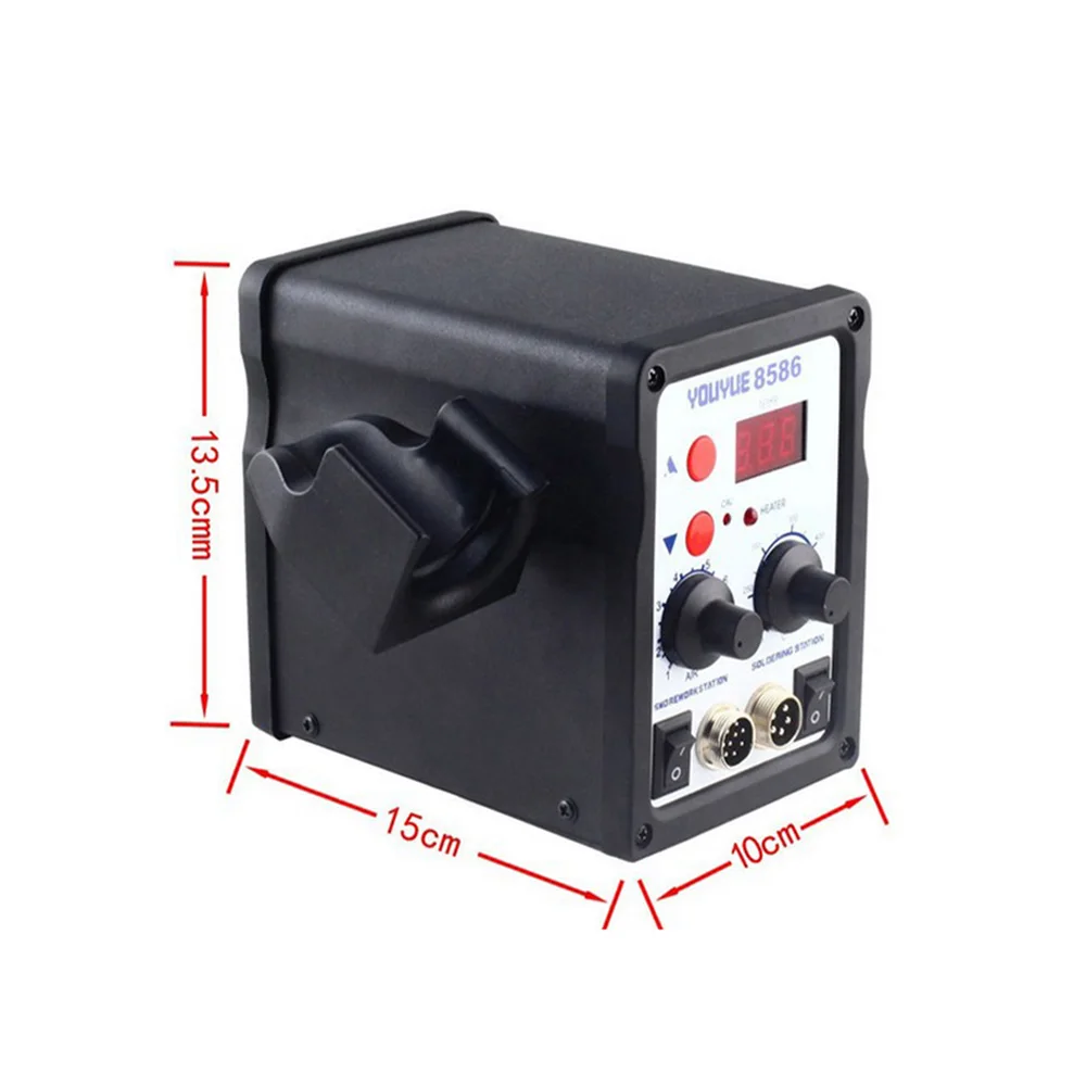 Это совершенно новая паяльная станция 2 в 1 SMD 8586. Металлический корпус из сплава с силиконовым корпусом высокого качества, элегантный внешний вид