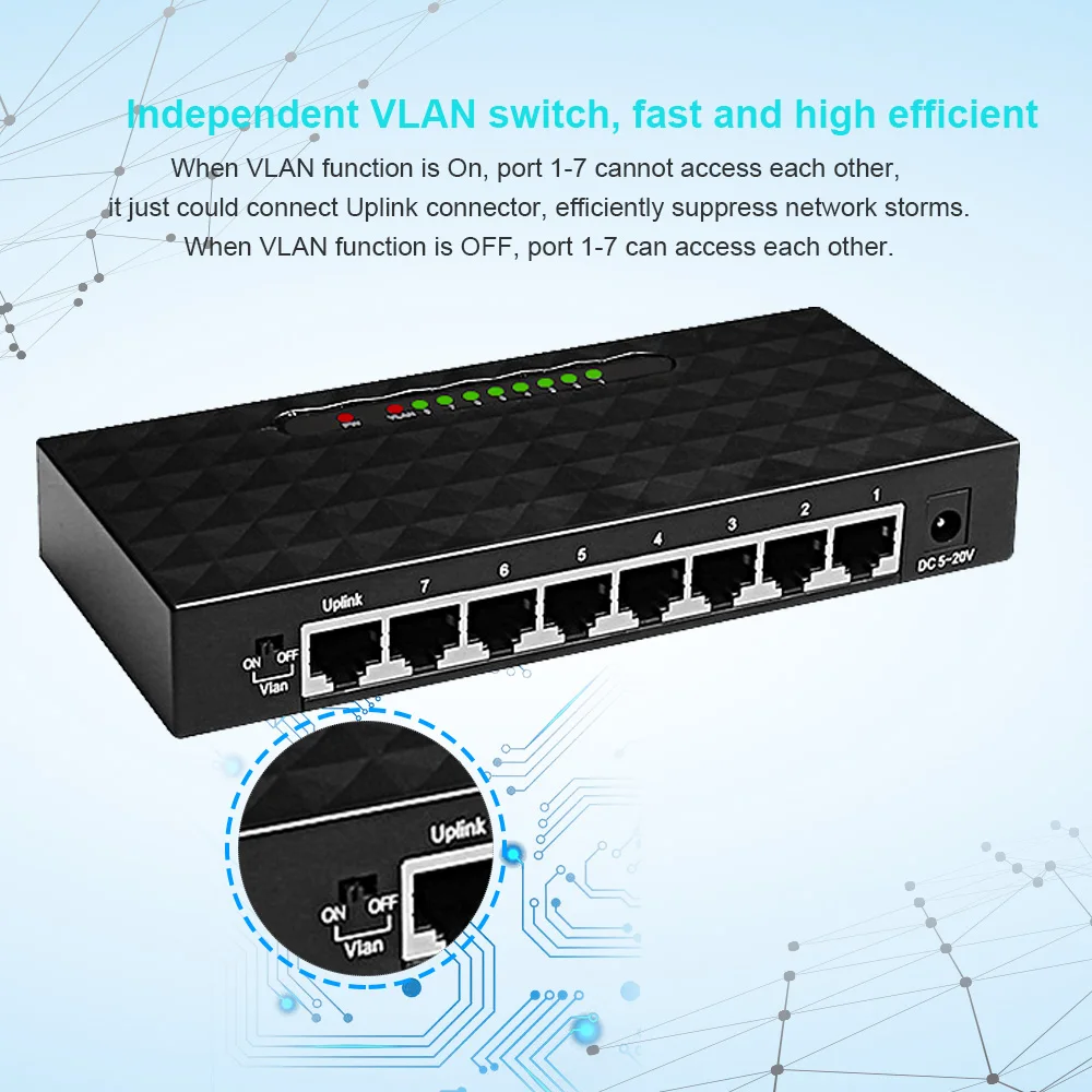 8-портовый сетевой гигабитный коммутатор 101001000 Мбитс, быстрый Ethernet коммутатор, Lan Hub, полныйполудуплексный обмен, Ethernet, умный коммутатор