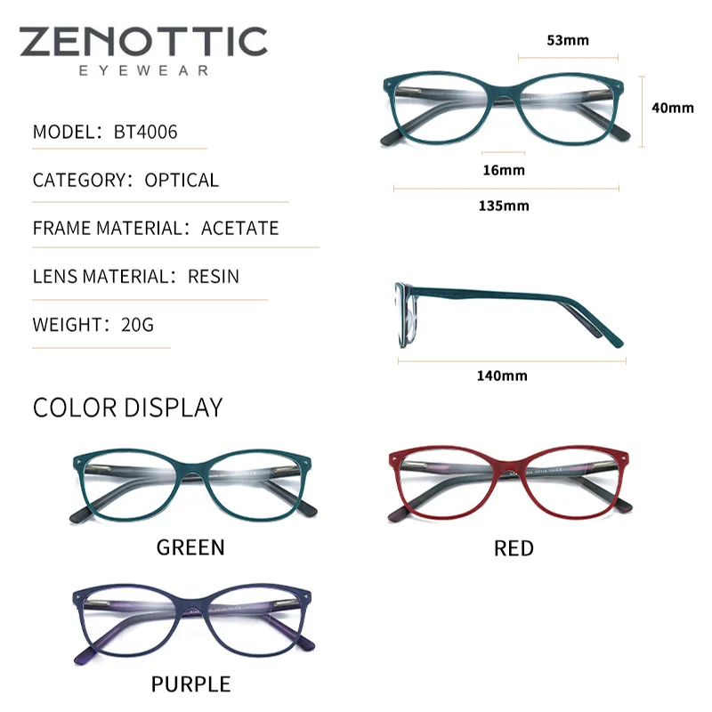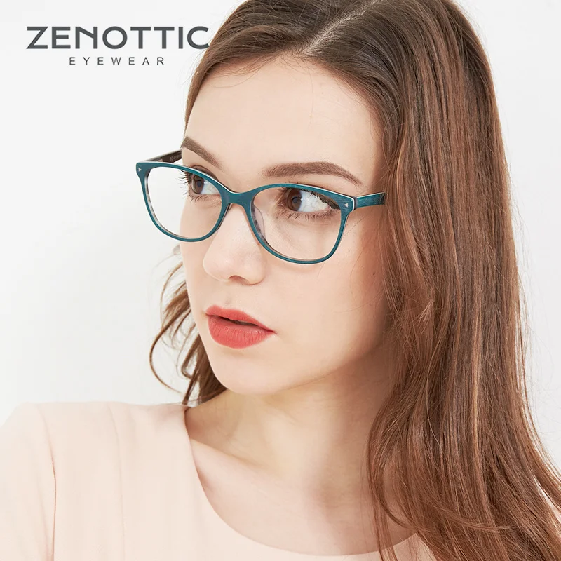 Оправа для очков ZENOTTIC Женская, модная ацетатная оправа для очков кошачий глаз, оптические очки с деревянными дужками оправа