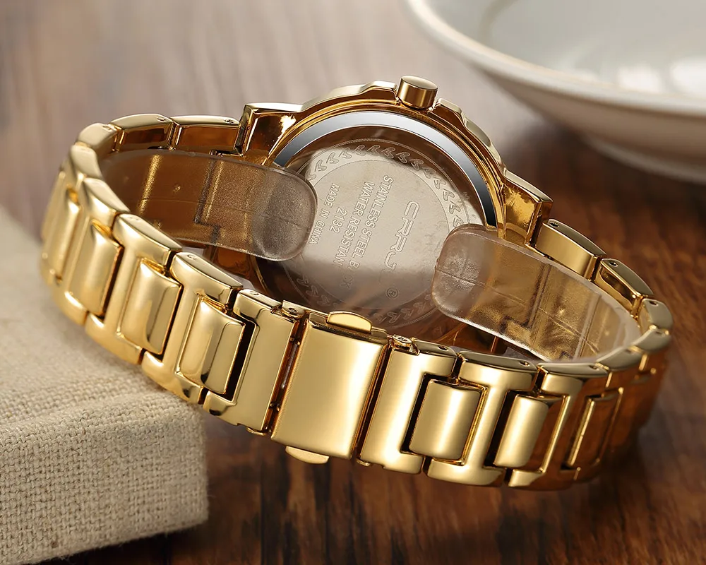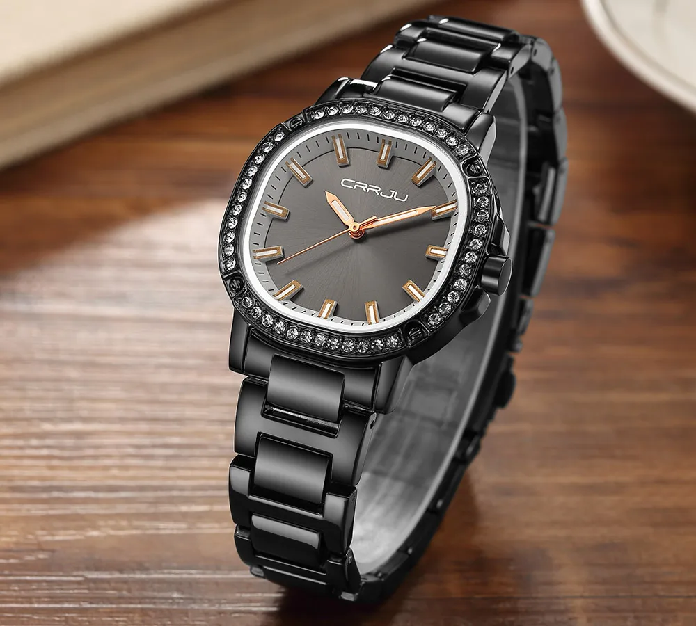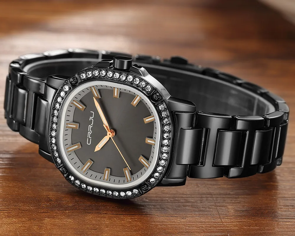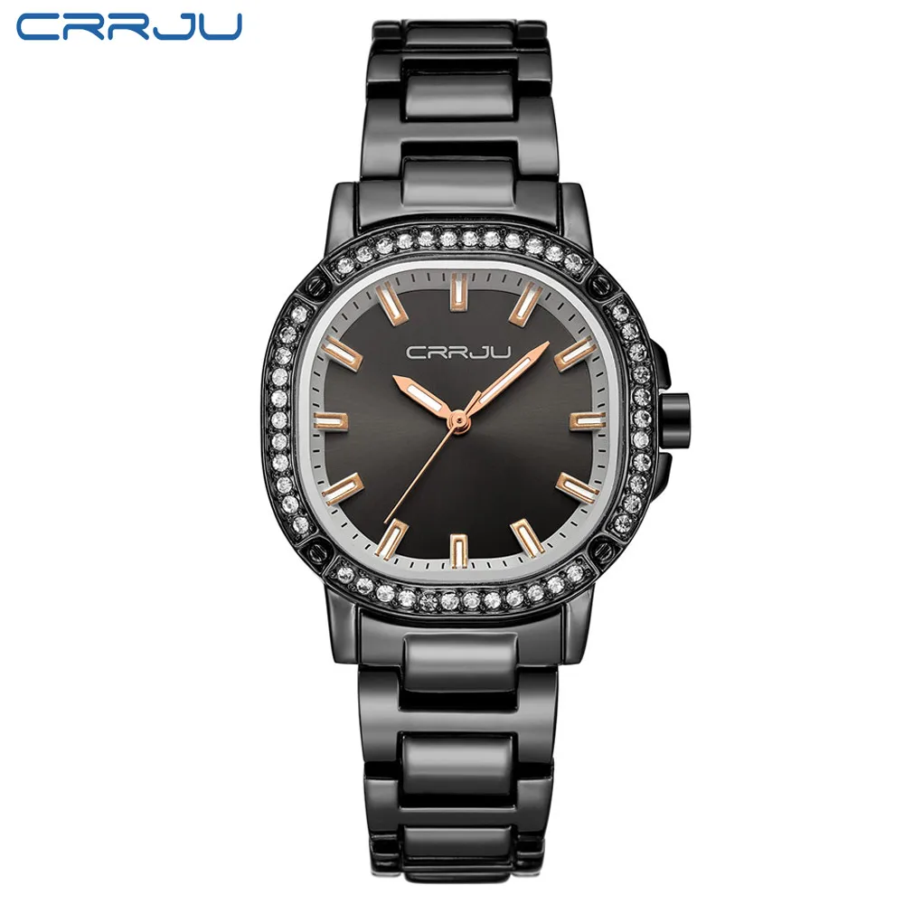 Часы CRRJU женские водонепроницаемые из нержавеющей стали, брендовые современные в японском стиле ретро, с кристаллами, цвета розового золота