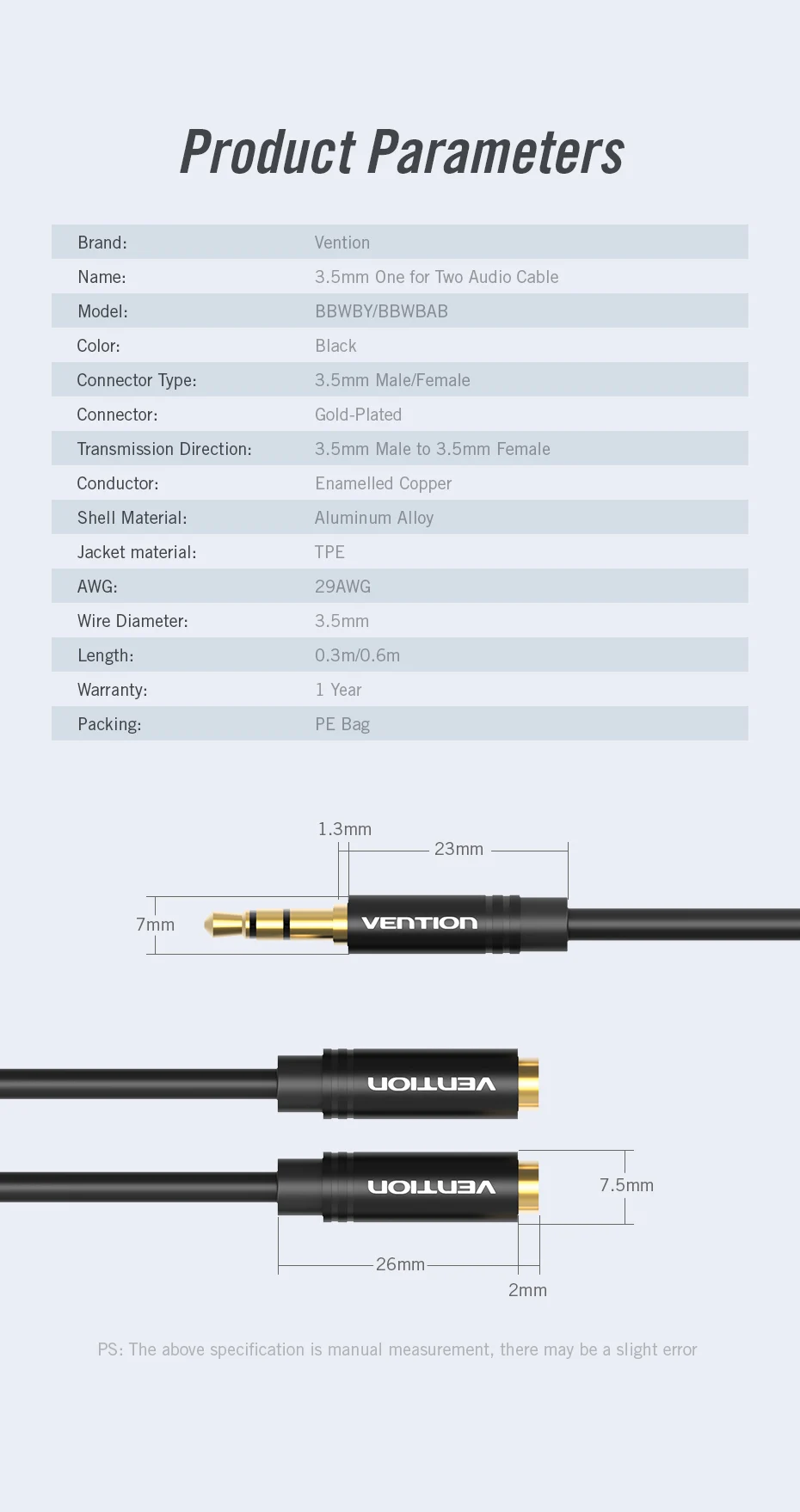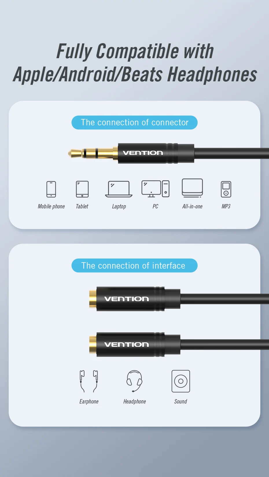 Аудиокабель-разветвитель Vention 3,5 мм штекер2 гнезда 3,5 мм Aux для iPhone, Huawei, MP3-плееров