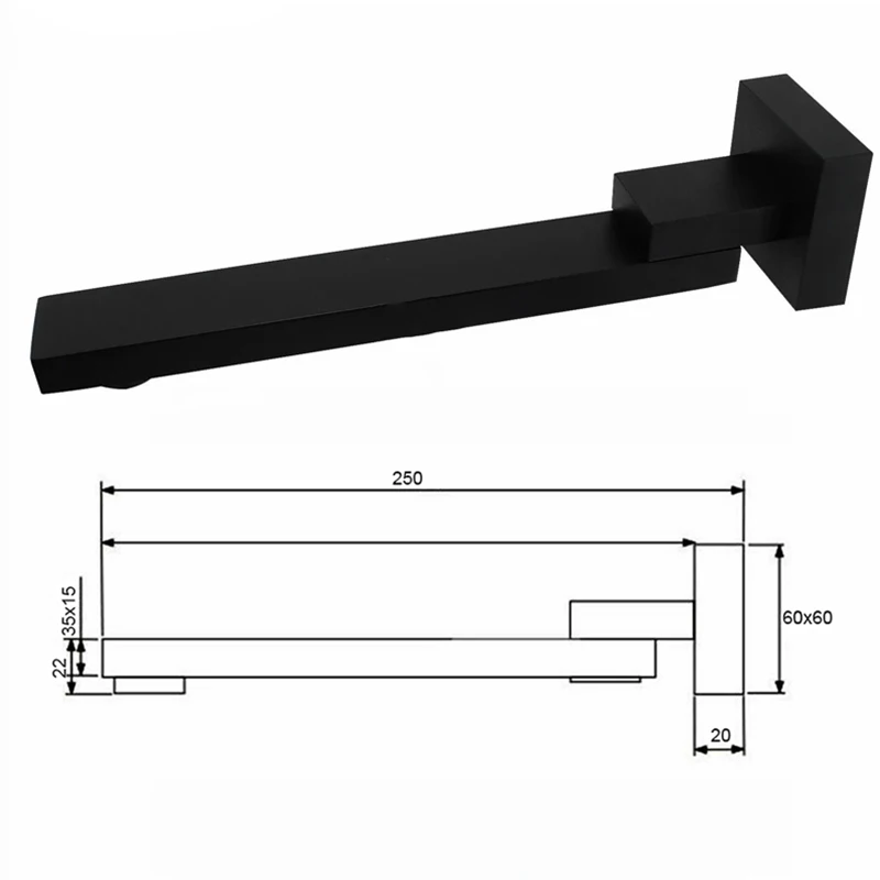 Настенный смеситель для ванной комнаты, вращающийся смеситель для ванны, носик, смеситель для воды, кран для раковины, Tapware, матовый черныйхром