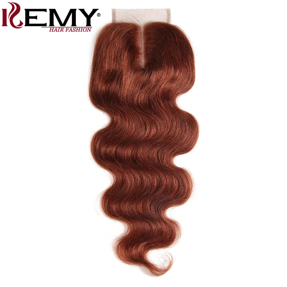 4 шт. человеческие волосы в пучке с закрытием коричневый Auburn бразильские волнистые натуральные кудрявые пучки волос 100% не Реми волосы для наращивания KEMY