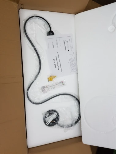 Это красивая вещь. Я не могу сказать, работает ли он, он был в очень поврежденной коробке, но хорошо упакован. Придется подключить электрика к установке.