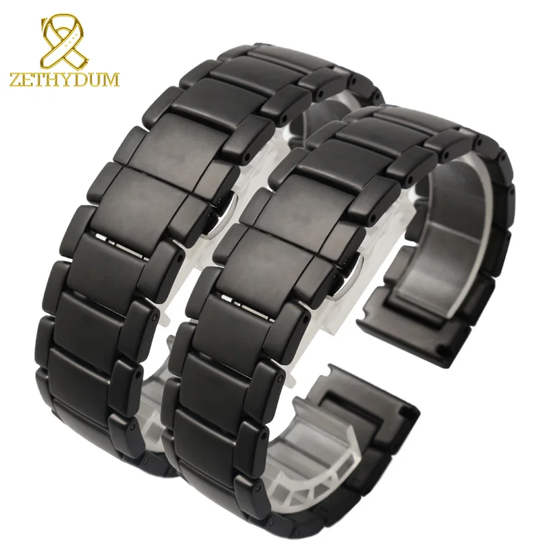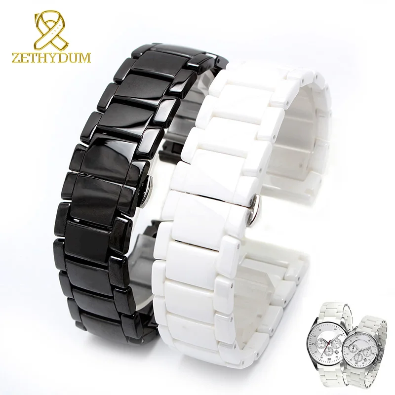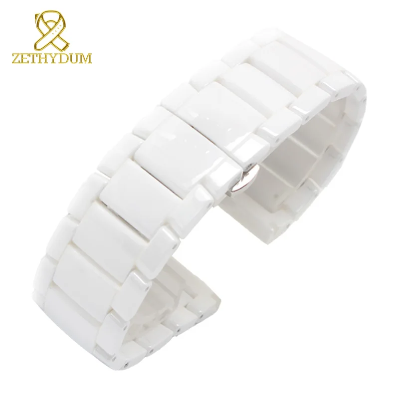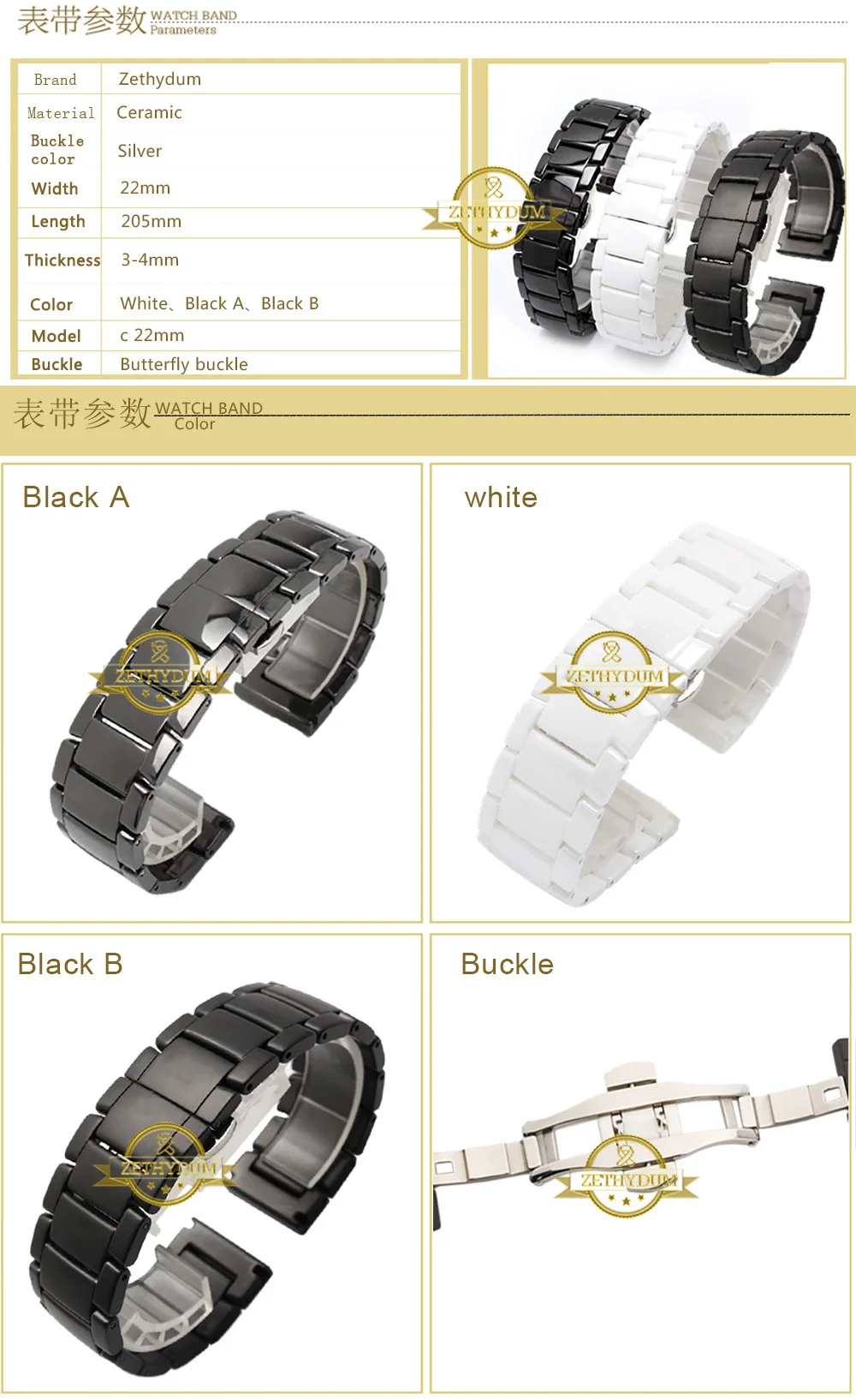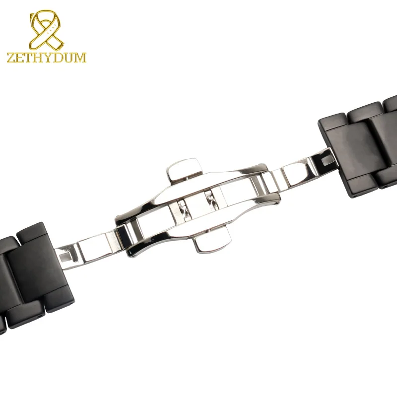 Ремешок матовый керамический для наручных часов, шлифованный песочный браслет с пряжкой-бабочкой белого и черного цвета, не выцветает, 22 мм