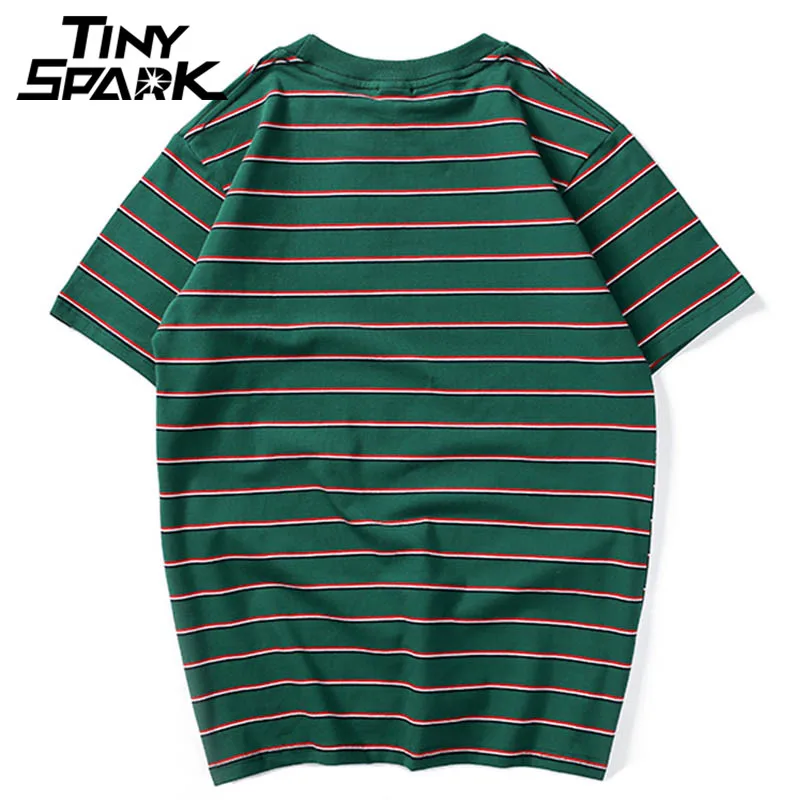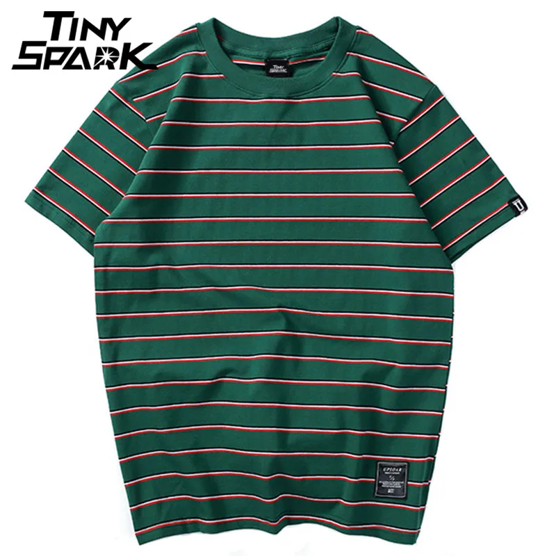 Полосатая футболка в стиле Харадзюку, мужская повседневная футболка с коротким рукавом, летняя футболка в стиле хип-хоп, уличные повседневные топы, футболки черного, белого и зеленого цветов, 2021