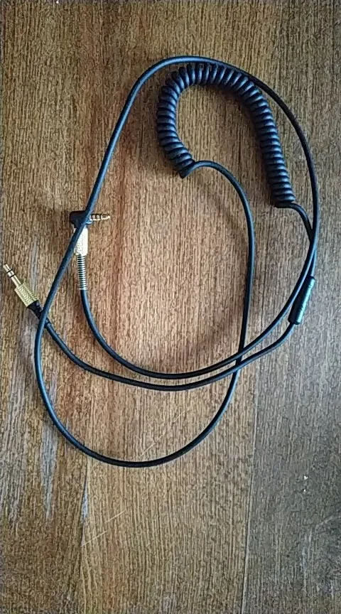 Качественный AUX-кабель, очень удачно имитирующий внешний вид старых оригинальных AUX-кабелей наушников Marshall Major II Bluetooth, Marshall Monitor Bluetooth, Marshall Mid Bluetooth и Marshall Mid A.N.C., с харизматичными позолоченными пружинами, только без надписи Marshall прописью на пульте, но кое в чём даже лучше оригинального, так как у этого кабеля на пульте сразу ТРИ кнопки (ответ/сброс вызова/пауза при воспроизведении и громкость +/-), а не одна, как в оригинальном кабеле из комплекта со старыми моделями "ушей" Marshall. И однозначно данный кабель лучше того дешёвого недоразумения, что сейчас Marshall Headphones в лице шведской Zound Industries AB International, Stockholm, кладут в комплект с новыми моделями их Bluetooth-стереонаушников - Marshall Monitor II A.N.C. и Marshall Major IV, на котором теперь даже нет пульта с микрофоном и кнопкой ответа/сброса вызова/паузы воспроизведения, так что при разговоре больше нельзя убрать смартфон в карман джинсов.