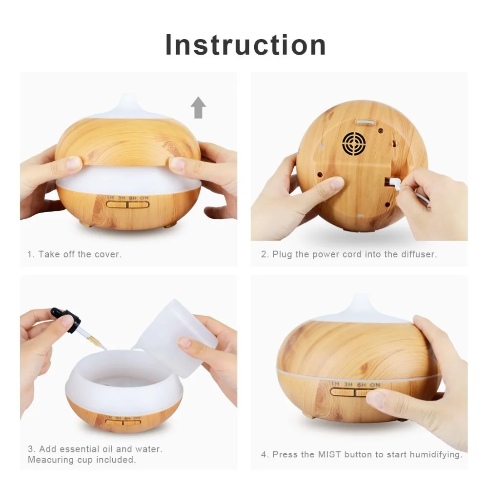 -Большая емкость 500 мл -Площадь увлажнения до 450 кв. М -Непрерывное увлажнение до 12 часов (по крайней мере) -Дизайн из древесины подходит для внутреннего декора -4 режима настройки таймера (1 ч/3 ч/6 ч/непрерывный) -2 рабочих режима (непрерывная/интермиссия) -2 режима освещения (изменение цвета/Непрерывное освещение) -7-Цвет светодиоды Яркость регулируемый Примечание: Короткое нажатие светильник для того, чтобы изменить светильник ing цвет. -Короткое нажатие на туман, чтобы выбрать настройку таймера 1 ч/3 ч/6 ч/Непрерывное -Пожалуйста, нажмите долго, чтобы переключить режим работы от непрерывного до промежуточного. -Пожалуйста, нажмите на светильник, чтобы переключить рабочую секцию от одного к другому.