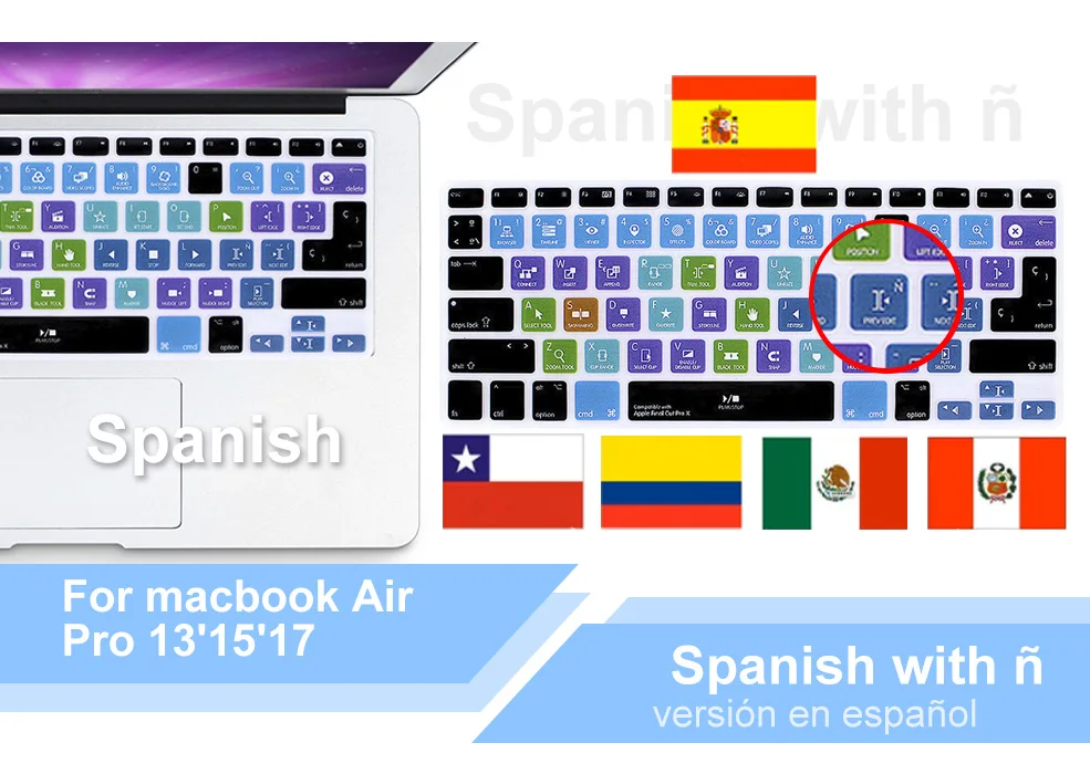 Хит продаж, новинка, функция горячих клавиш с испанской раскладкой, Силиконовая накладка на клавиатуру, защитная накладка на клавиатуру для Macbook Air Pro 13, 15, 17 дюймов, ЕССША