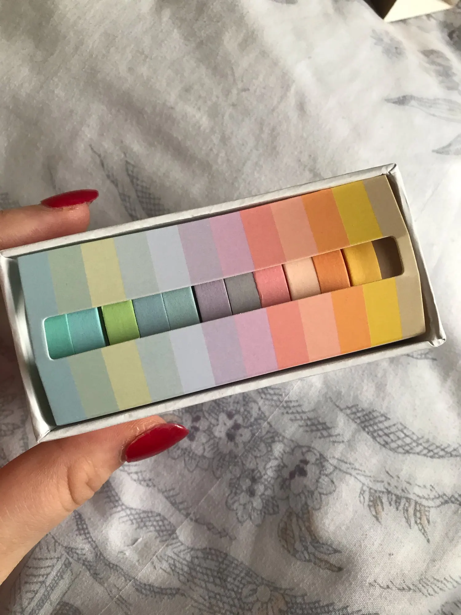 Посылка прибыла в течение нескольких дней (но это необходимо ожидать), и я в целом люблю цвета и выбор, они действительно милые, я рекомендую!
