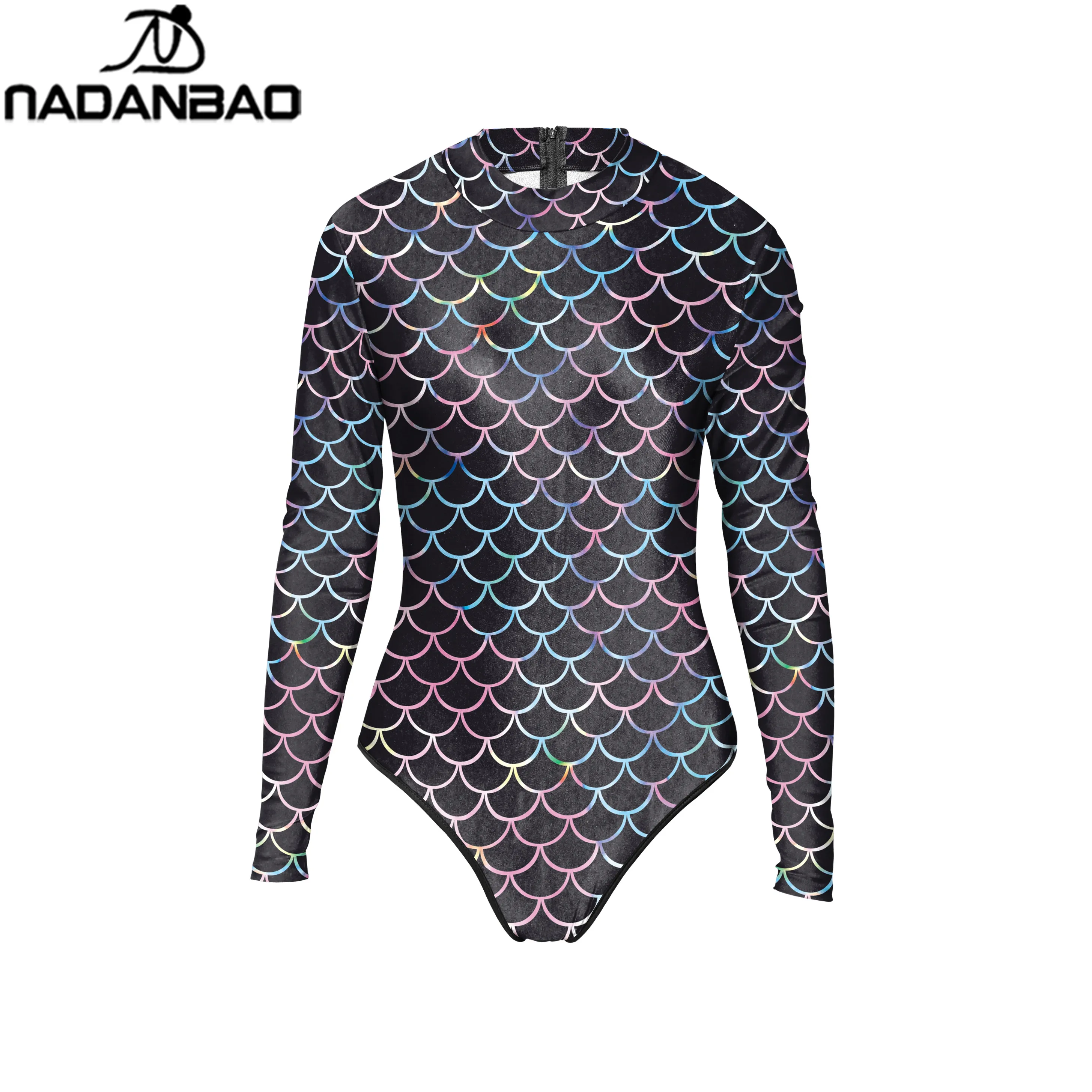 NADANBAO Одна деталь Плавание Костюм Русалки Плавание костюм с длинными рукавами, на молнии, с принтом, одежда размера плюс Плавание одежда Плавание SuitY02070
