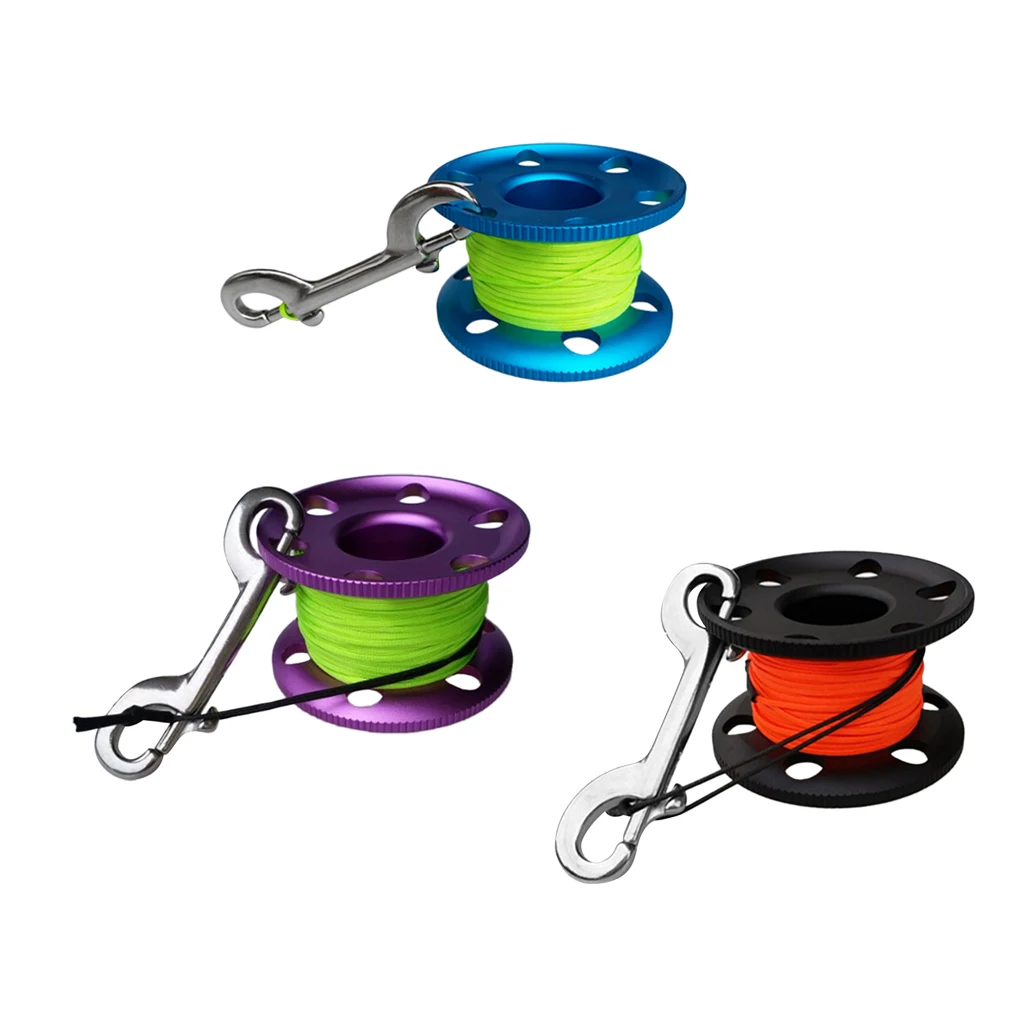 Дайвинг алюминиевый Finger Spool Катушка 20 Вт, 30 Вт, 50 м линия с Нержавеющаясталь оснастки зажим болта цвет: черный, синий фиолетовый