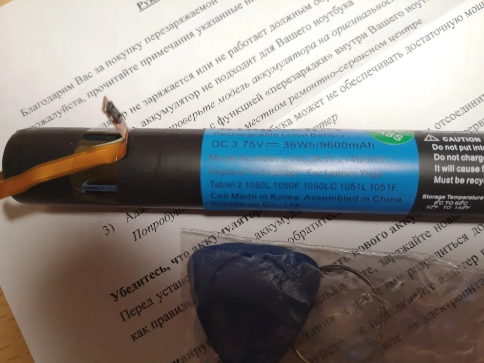 Аккумулятор пришел в Уфу за 10дней при заказе из России. Заказ принес курьер домой. Аккумулятор подошел к Lenovo Yoga 2 - 1051L. С установкой помучалось.ю но все получилось. Планшет заработал.