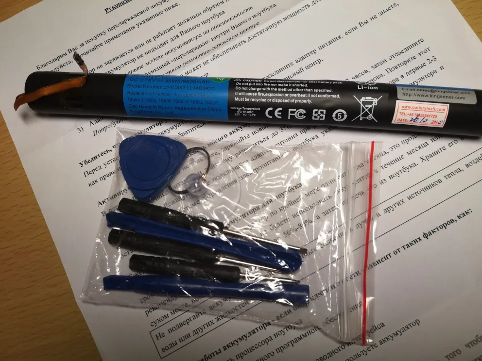 Товар соответствует, в коробке набор для замены, использовал только набор из посылки, все удалось заменить успешно. (разработчик планшета тот извращенец, мог бы и подумать об замене батарейки)