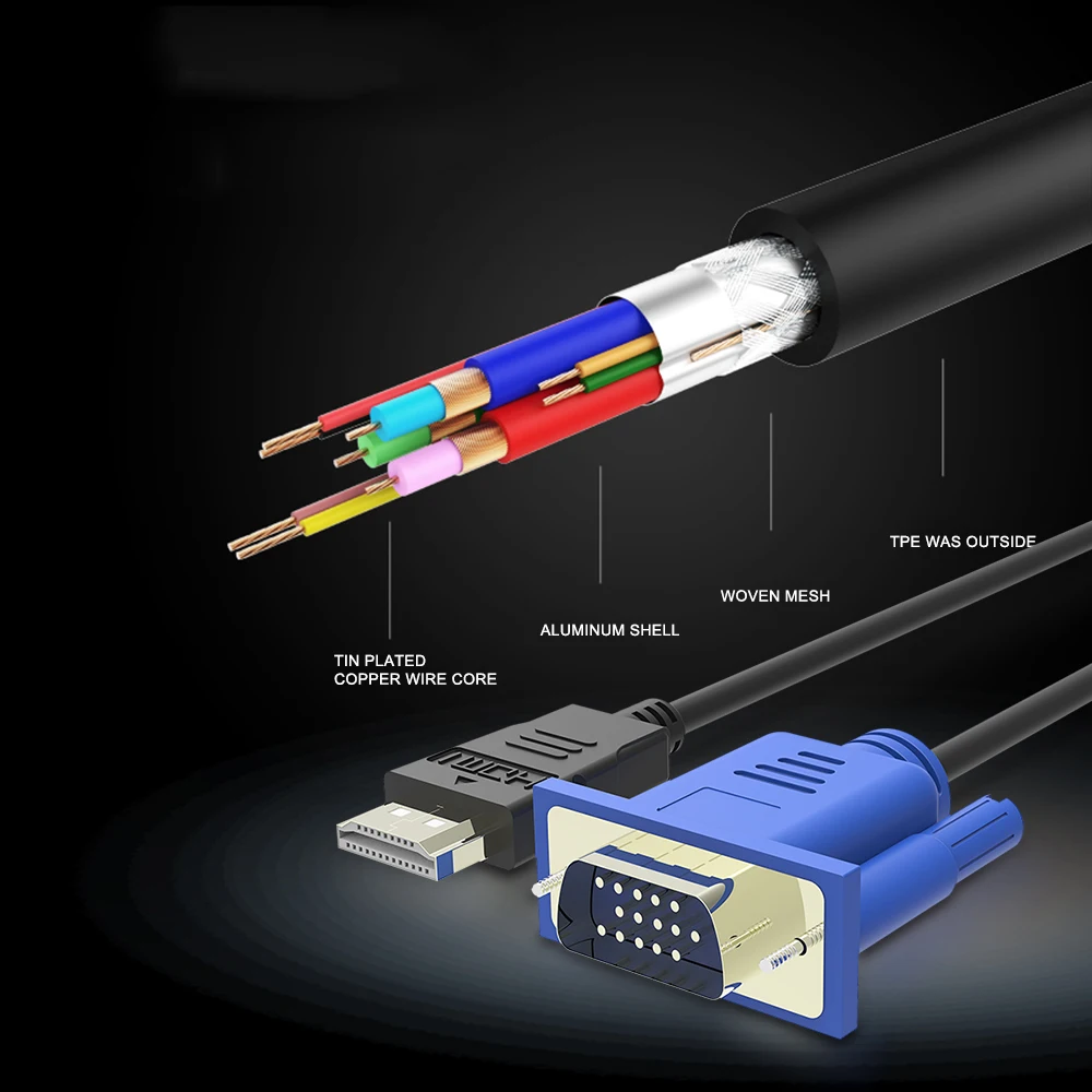 2. Кабель, совместимый с HDMI и VGA, предназначен для подключения и передачи сигналов с порта, совместимого с HDMI, на порт VGA.
