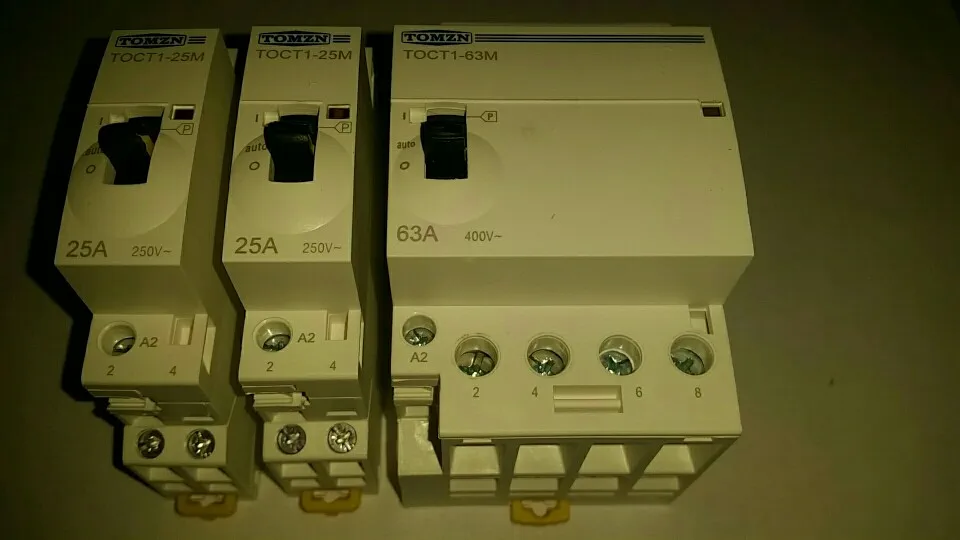 Модульный контактор переменного тока TOCT1, 2P, 25 А, 220 В230 В, 5060 Гц, с ручным переключателем управления 2NO или 1NO 1NC или 2NC