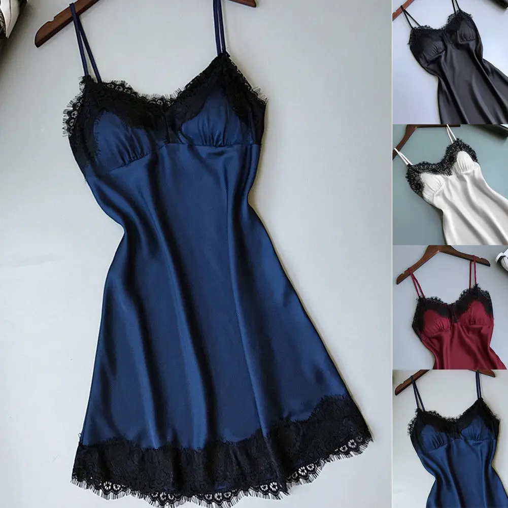 Новинка 2018, стильная женская летняя пикантная ночная рубашка, атласная шелковая ночная рубашка, кружевная ночная рубашка, модная одежда