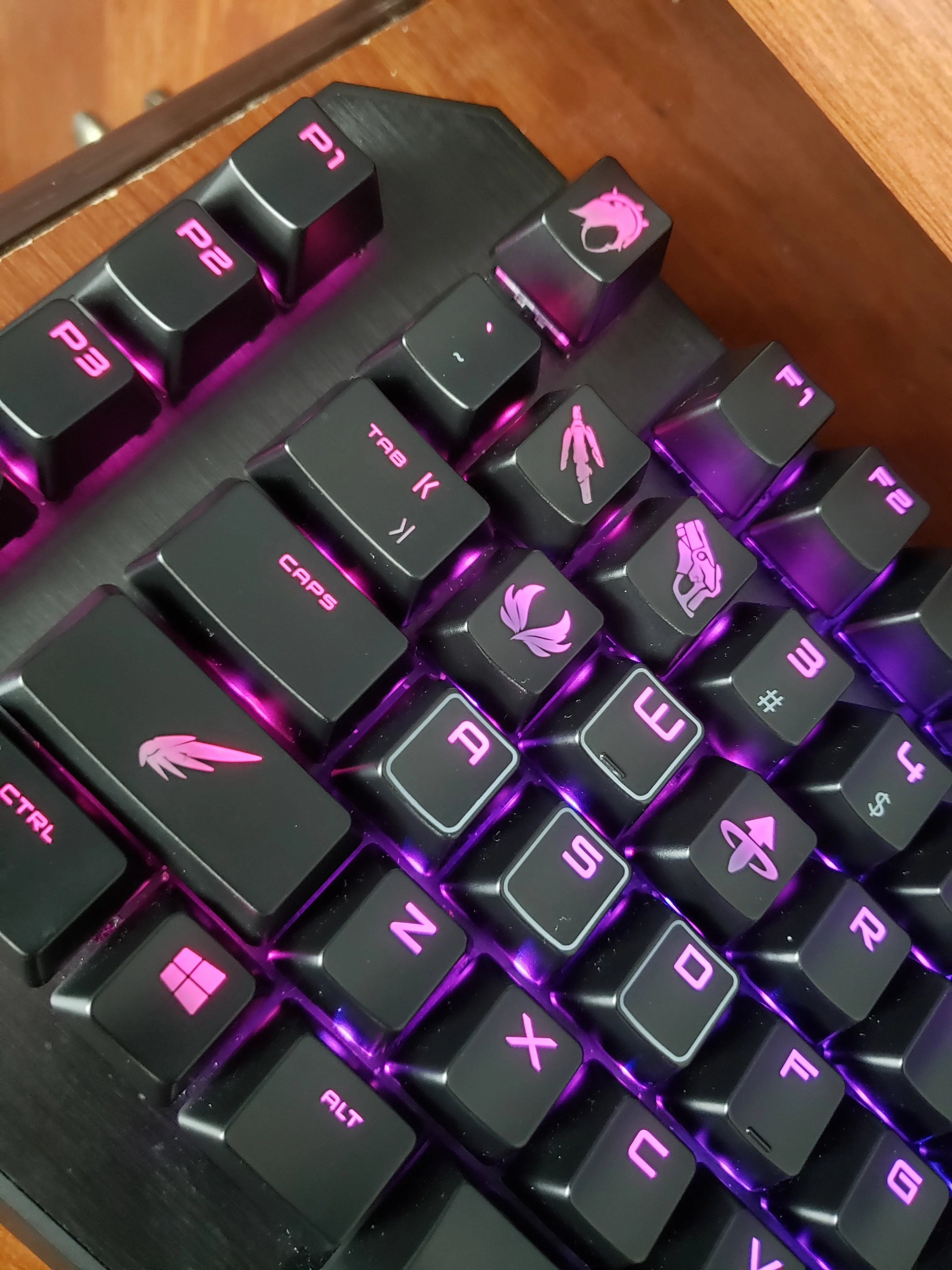 Ключи немного больше, чем мои другие ключи, но это не проблема, когда вы играете в игры. Вы можете слегка почувствовать форму изображения, выгравированного на клавише, но он исчезнет, когда вы его используете, так что это не будет проблемой. В целом хорошее качество и доволен.