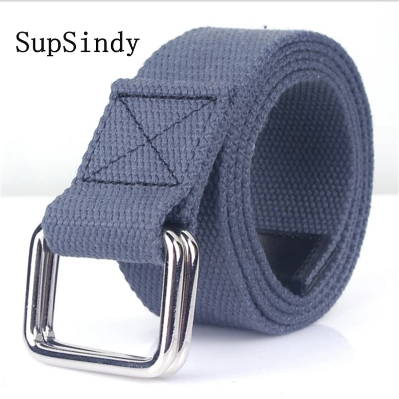 SupSindy Модный повседневный мужской холщовый ремень с двойным кольцом, металлическая пряжка, красочный пояс, роскошные джинсовые ремни для женщин, ремешок, мужской черный