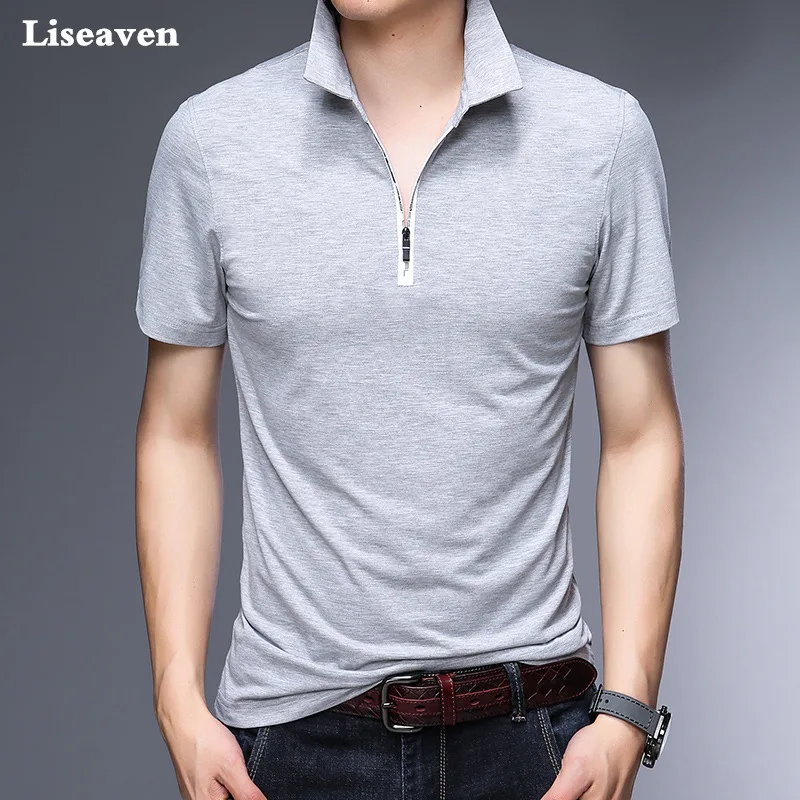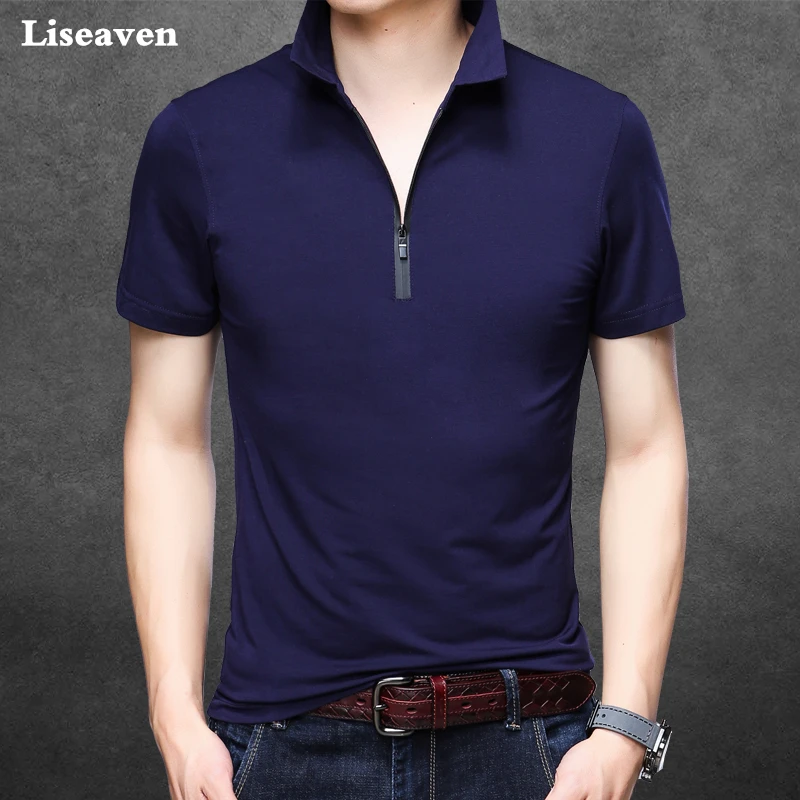 Мужская хлопковая футболка Liseaven, с отложным воротником, однотонные