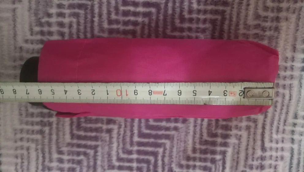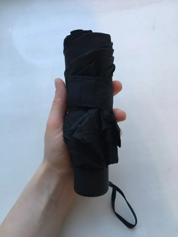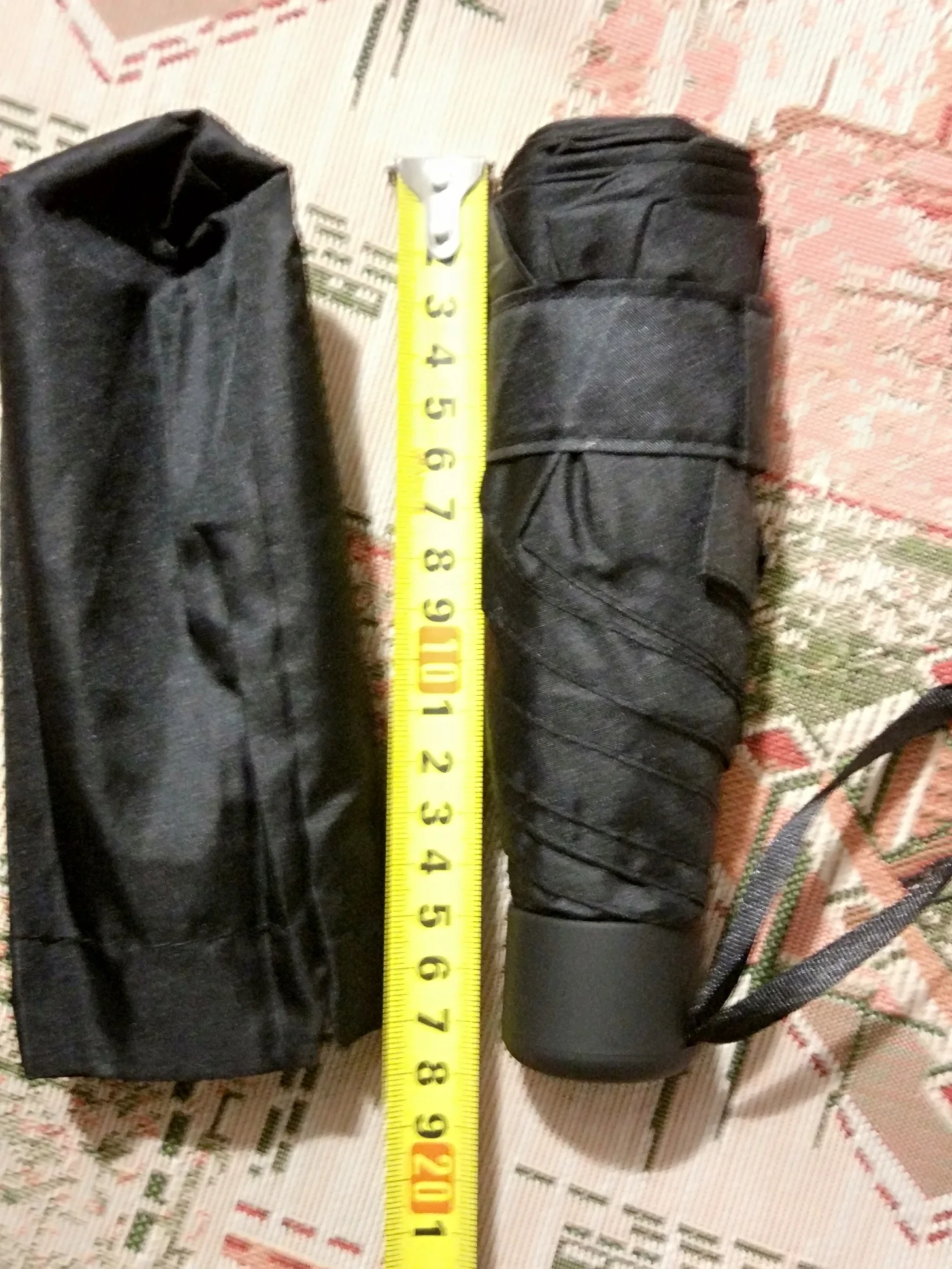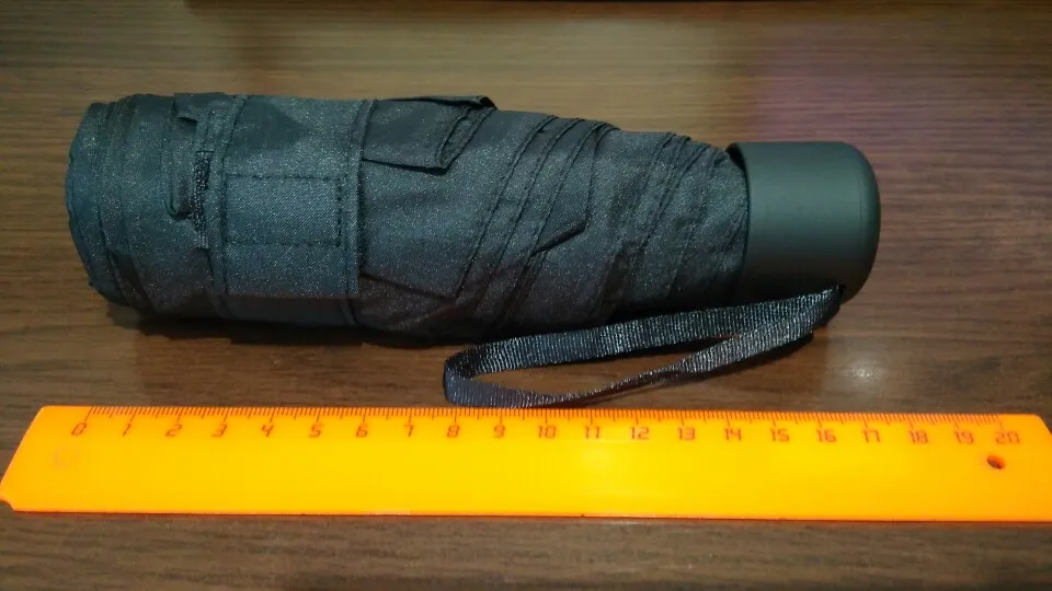 Заказывал с доставкой из России. Посылка пришла через 7 дней после заказа. Доставка СДЭК курьером до двери, но я сам забрал в офисе. Упаковано очень хорошо. Товар соответствует описанию. Зонтик маленький, длина 175 мм, в сложенном состоянии диаметр, примерно, 40-45 мм, шесть спиц, весит 184 гр., легко умещается во внутреннем кармане пиджака, ветровки и другой верней одежды. Поэтому для меня это главное достоинство, когда идешь без сумки, но сохраняется возможность дождя, а таскать в руках обычный зонт не хочется. Да может и дождя не будет, а если вдруг пойдёт, то этот как раз и выручит. Зонт не выглядит совсем уж хлипким, но в целом конструкция сделана по утончённей, в отличии от обычного складного зонта. Не для погоды с сильным ветром. В целом зонт понравился, я думаю, что если им аккуратно пользоваться, то он послужит. Рекомендую товар и продавца.