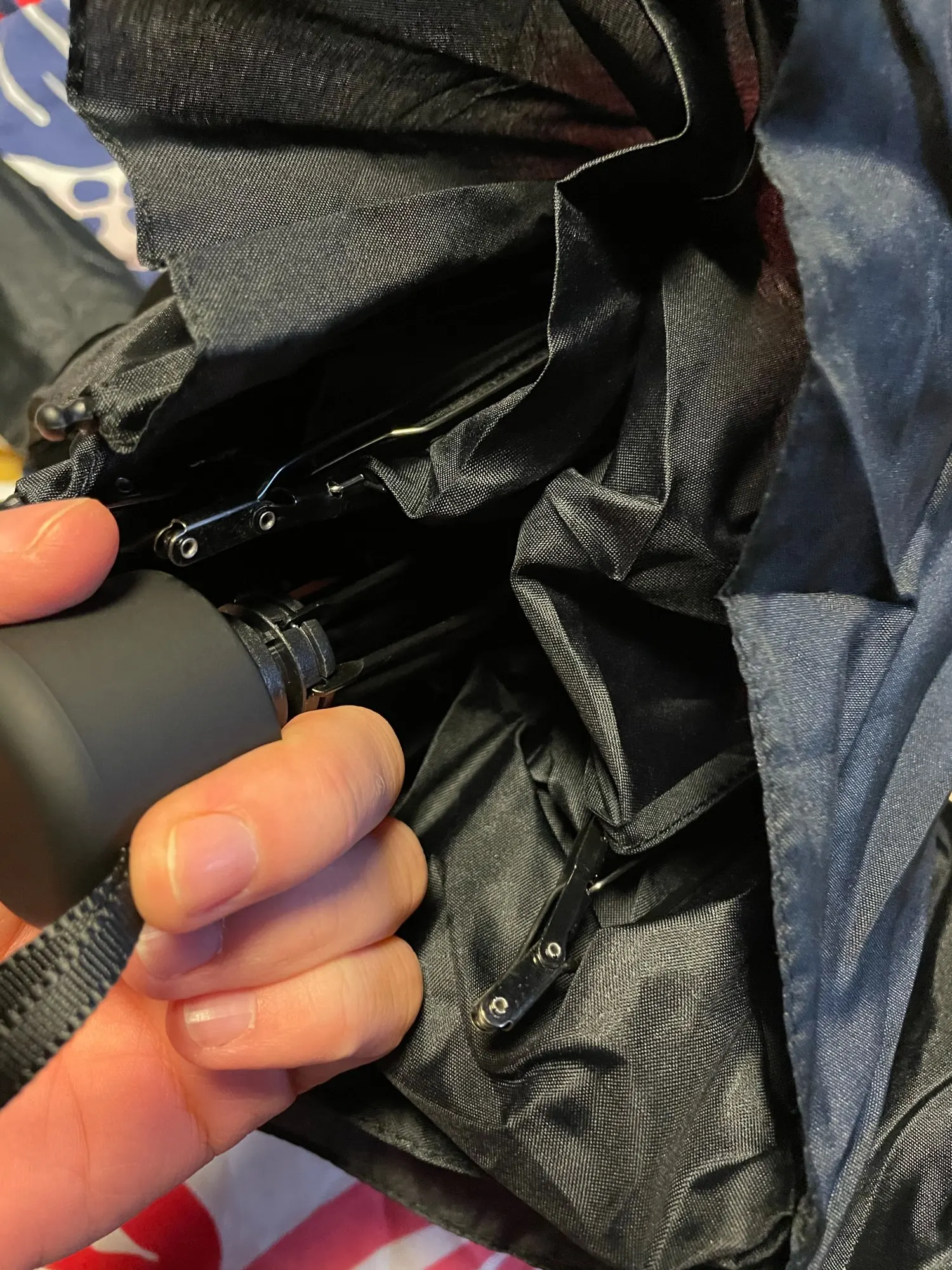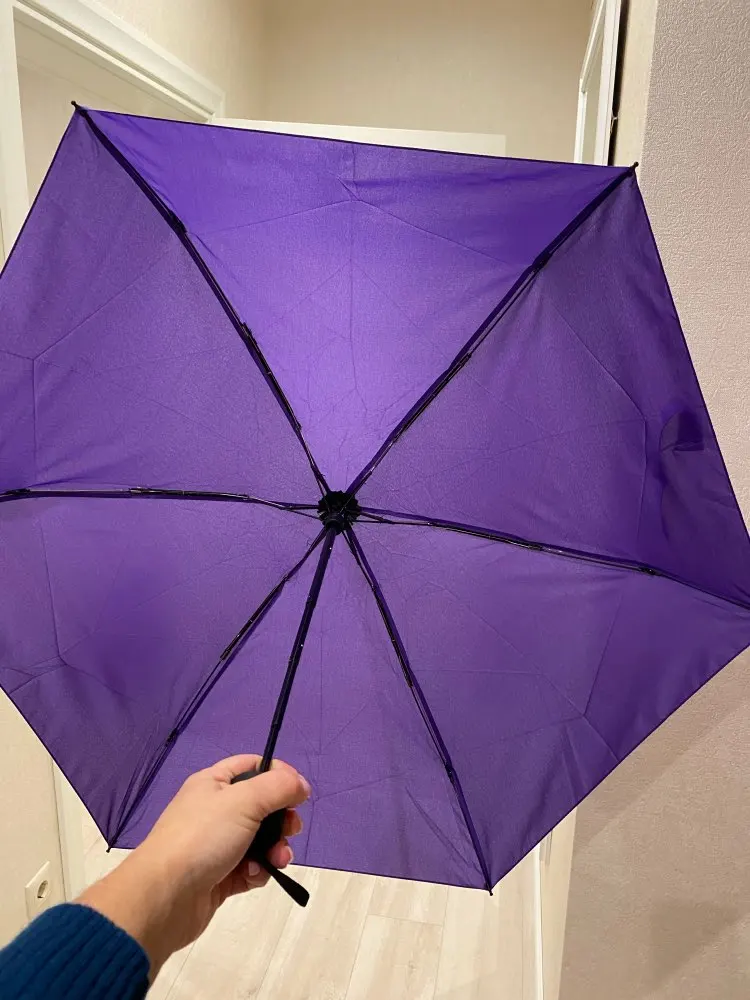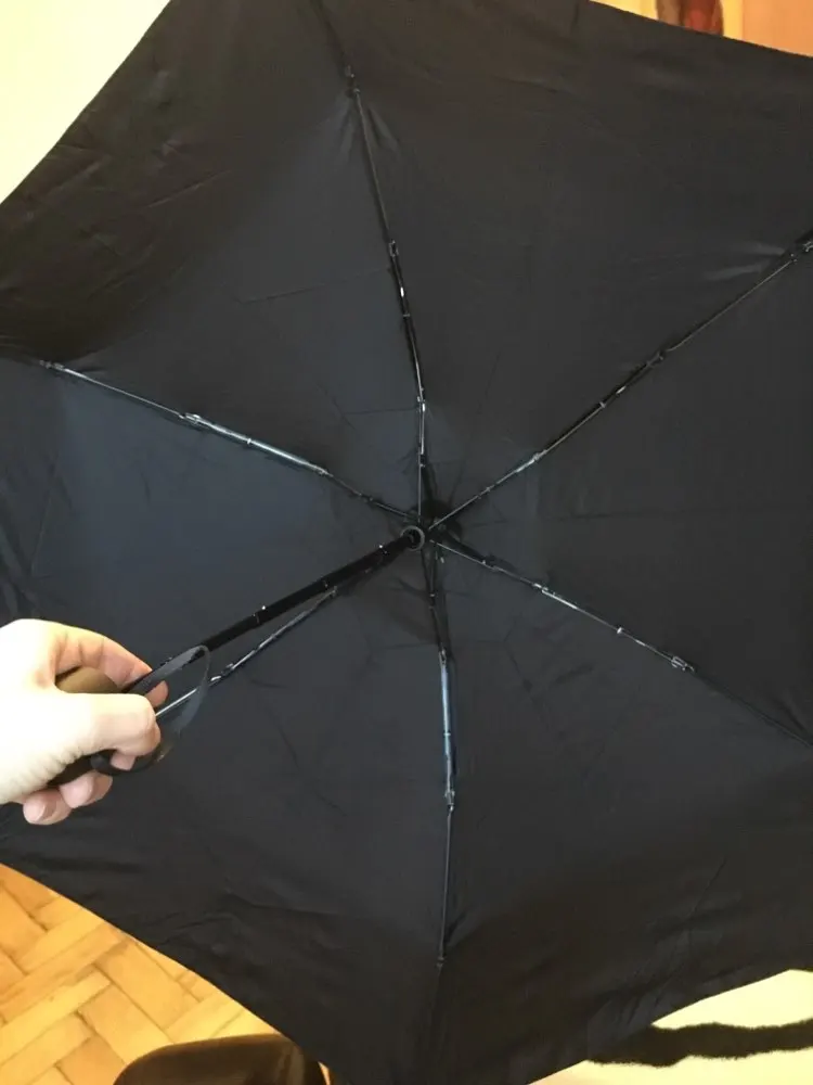 Хороший компактный зонтик. Размером чуть больше ладони в сложенном состоянии, в разложенном нормальный зонт на одного человека. Никаких пружин и кнопок - усилием рук раздвинул, усилием сложил. Много составных частей - и плечи, и ручка состоят из 5 сегментов, боюсь какого либо ветра это все не выдержит, но пока не проверял - зима все таки. В остальном - удобно всегда иметь при себе. Служба доставки первый отправленный зонт потеряла, но продавец быстро отправил второй, который принесли буквально дней через 15 домой после моего сообщения в чате, что что-то долго едет первый зонт)