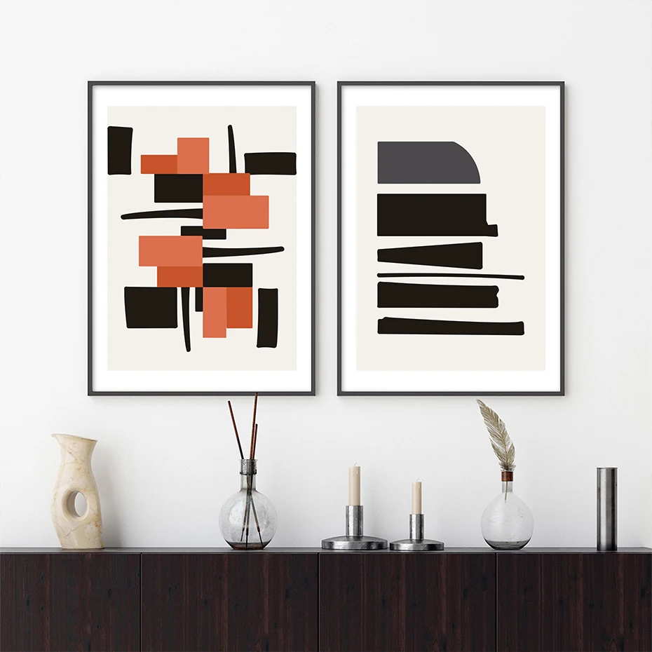 Современные абстрактные геометрические картины на холсте оранжевые черные скандинавские плакаты принты настенные картины для спальни гостиной домашний декор